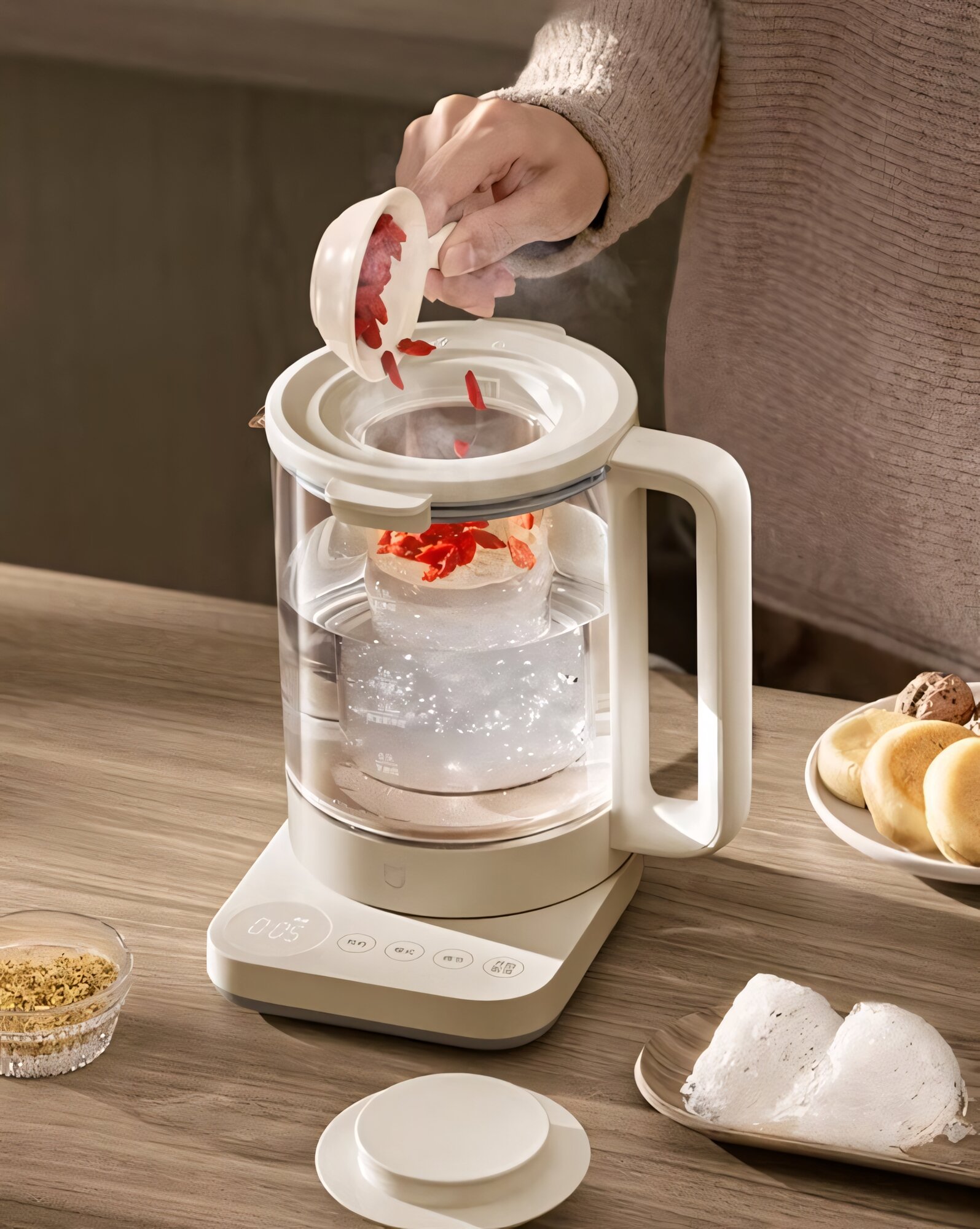 Электрический чайник Xiaomi Mijia S2 со съемной крышкой, стеклянная колба, 1.5 л, бежевый интересное:
