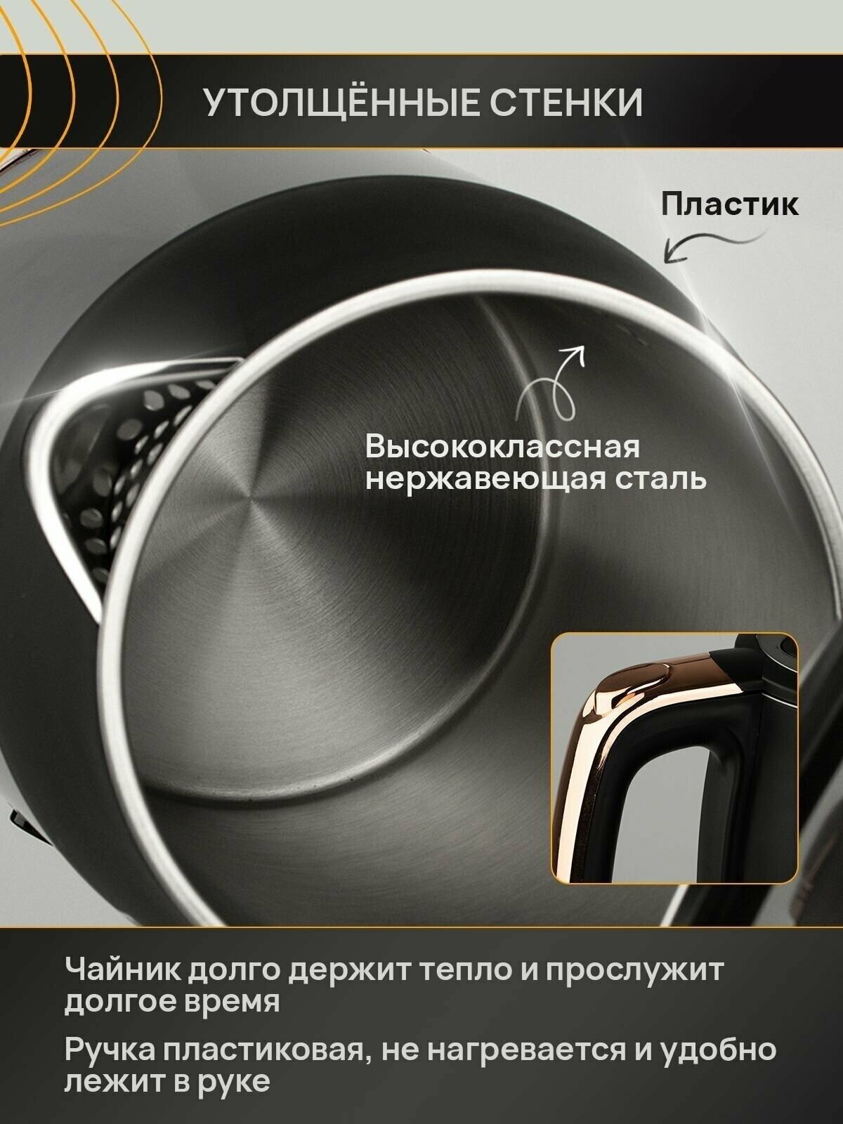 | Особенности | бесшумное закипание / вращение на 360 градусов / двойные стенки / индикация включения |