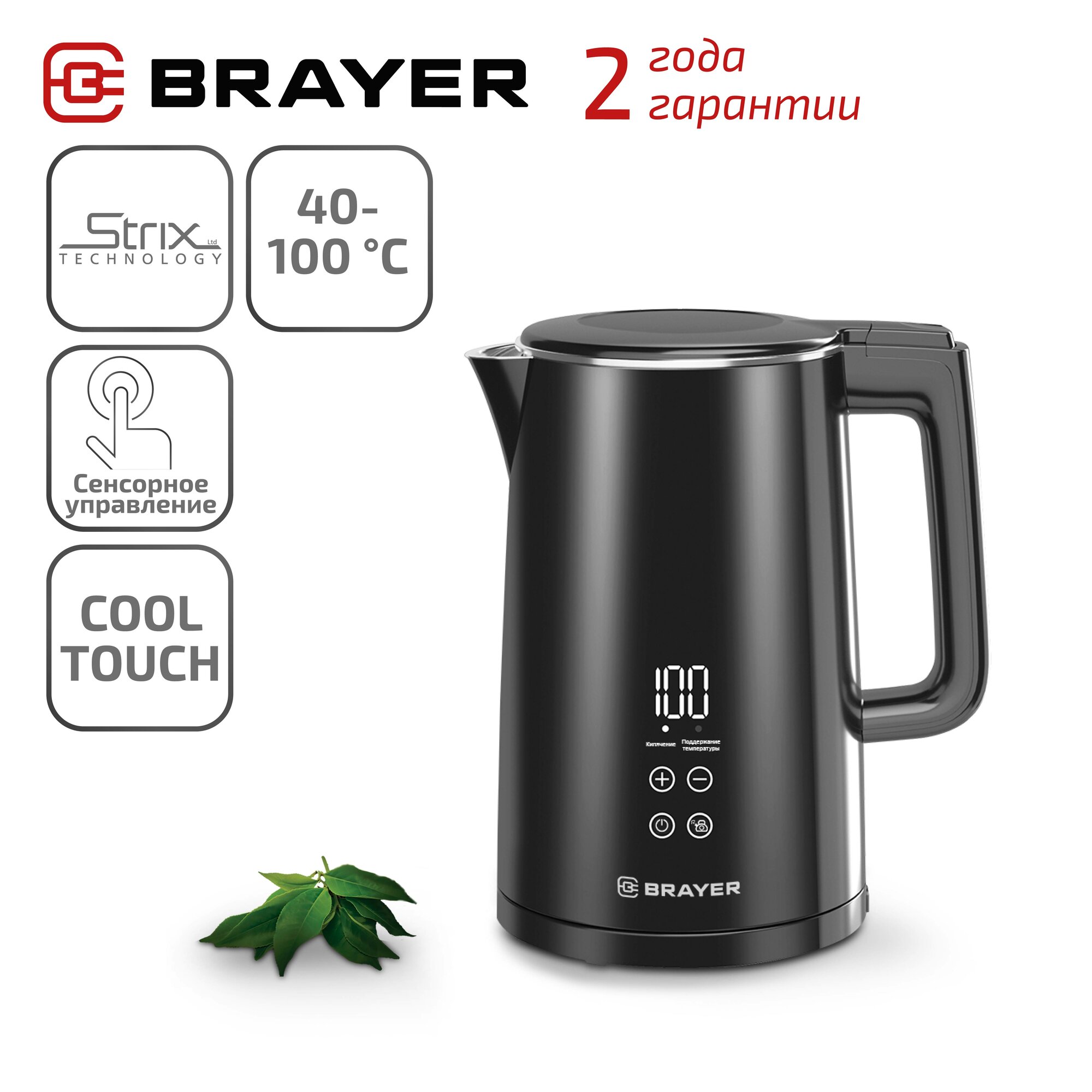 Купить Чайник электрический BRAYER BR1035, 2200Вт, 1,5л, поддержания температуры, сенсорное управление, STRIX, черный