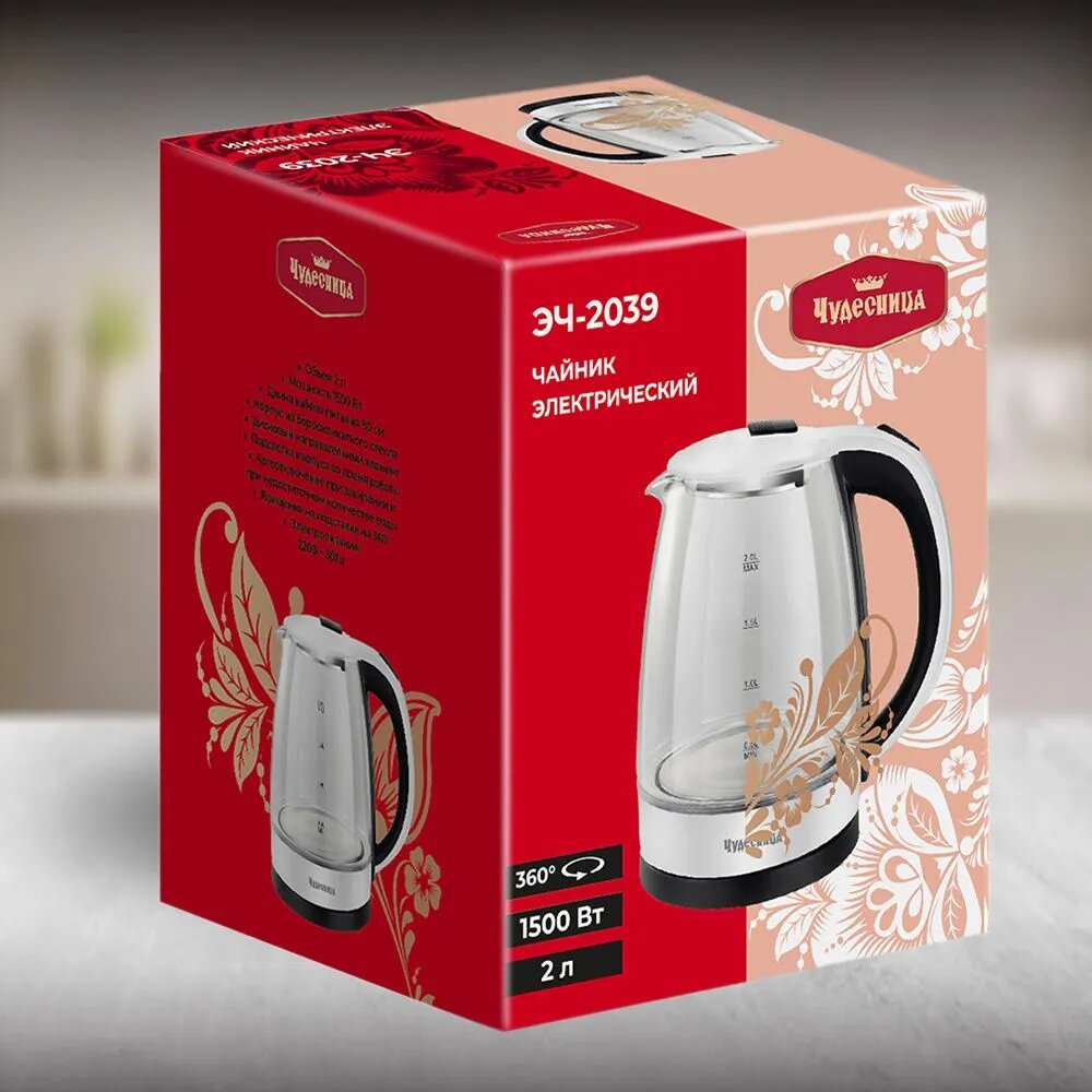 Чайник электрический Чудесница ЭЧ-2039, 2 л, 1500 Вт, белый/черный интересное:
