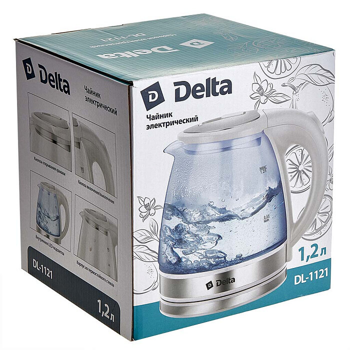Чайник Delta DL-1121 корпус из жаропрочного стекла, 1.2л, белый интересное: