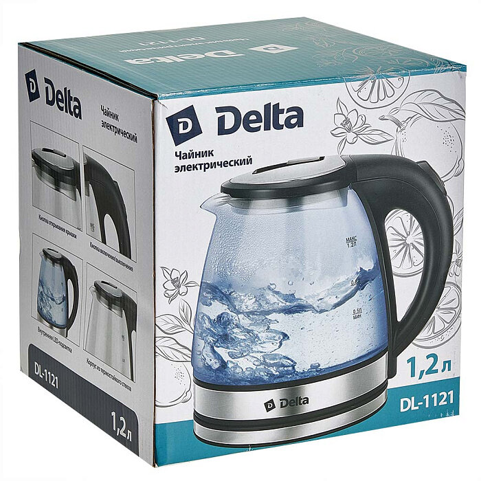 Купить Чайник Delta DL-1121 корпус из жаропрочного стекла, 1.2л, черный