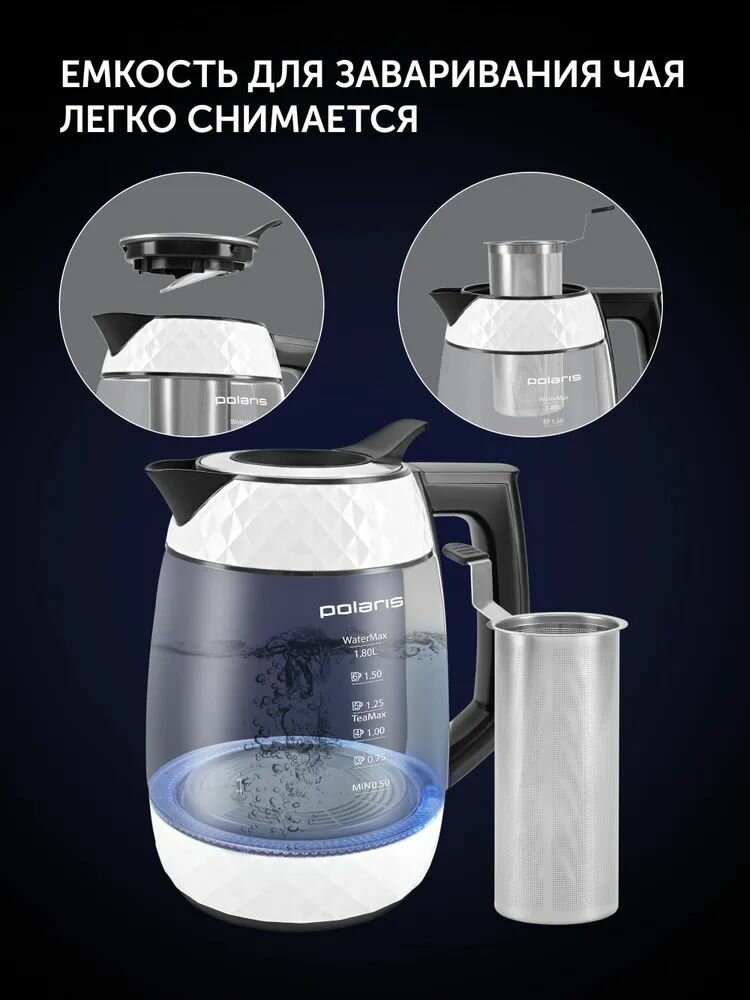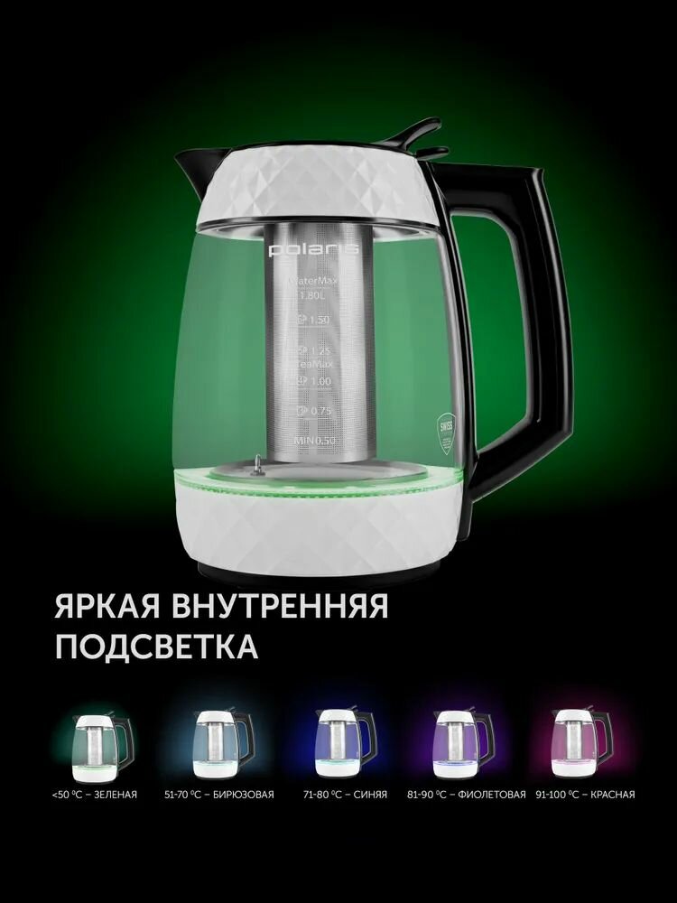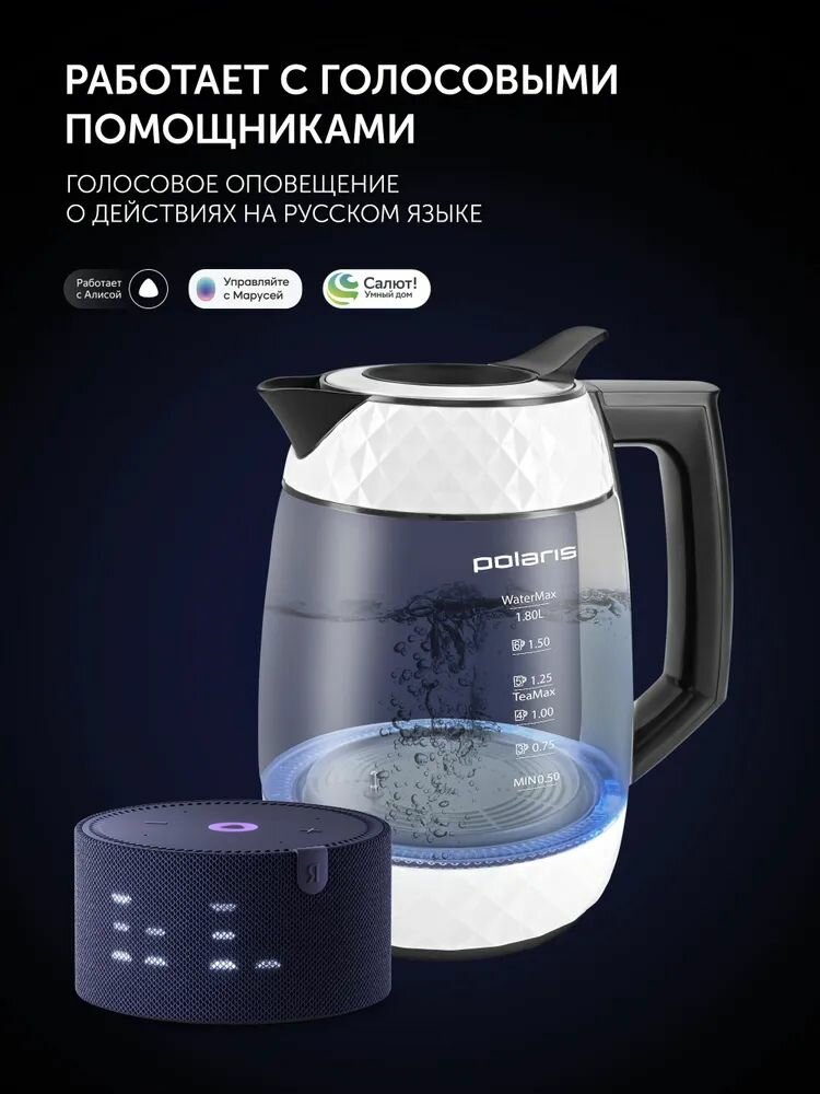 Электрический чайник Polaris PWK 1823CGLD WIFI IQ Home с подссветкой / Электрочайник тихий, белый интересное:
