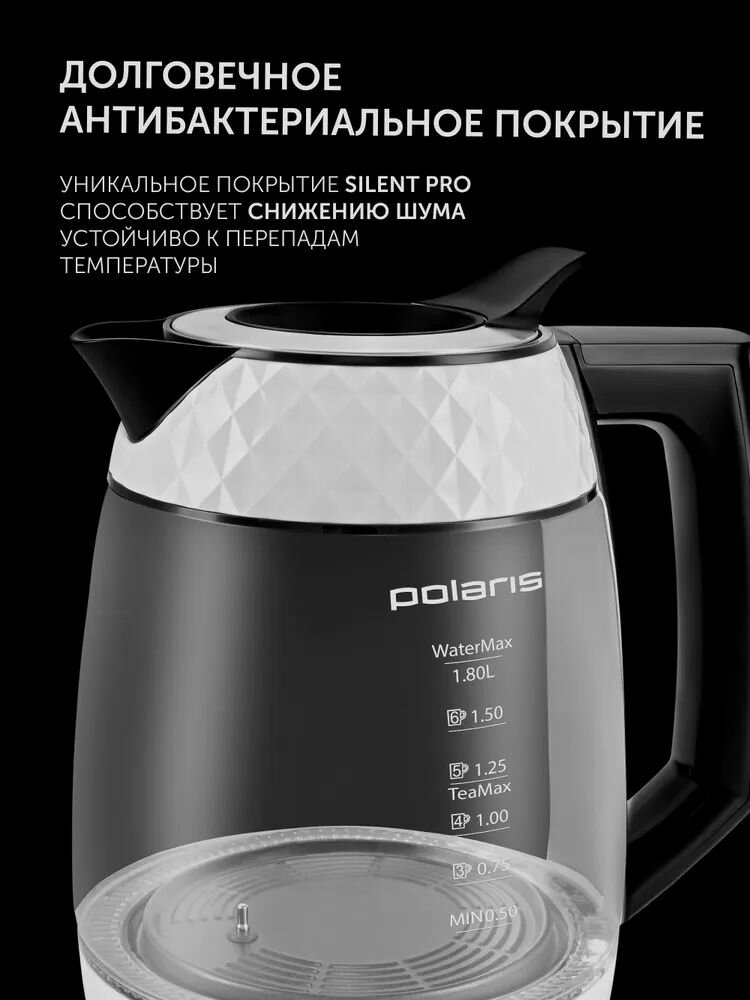 Электрический чайник Polaris PWK 1823CGLD WIFI IQ Home с подссветкой / Электрочайник тихий, черный