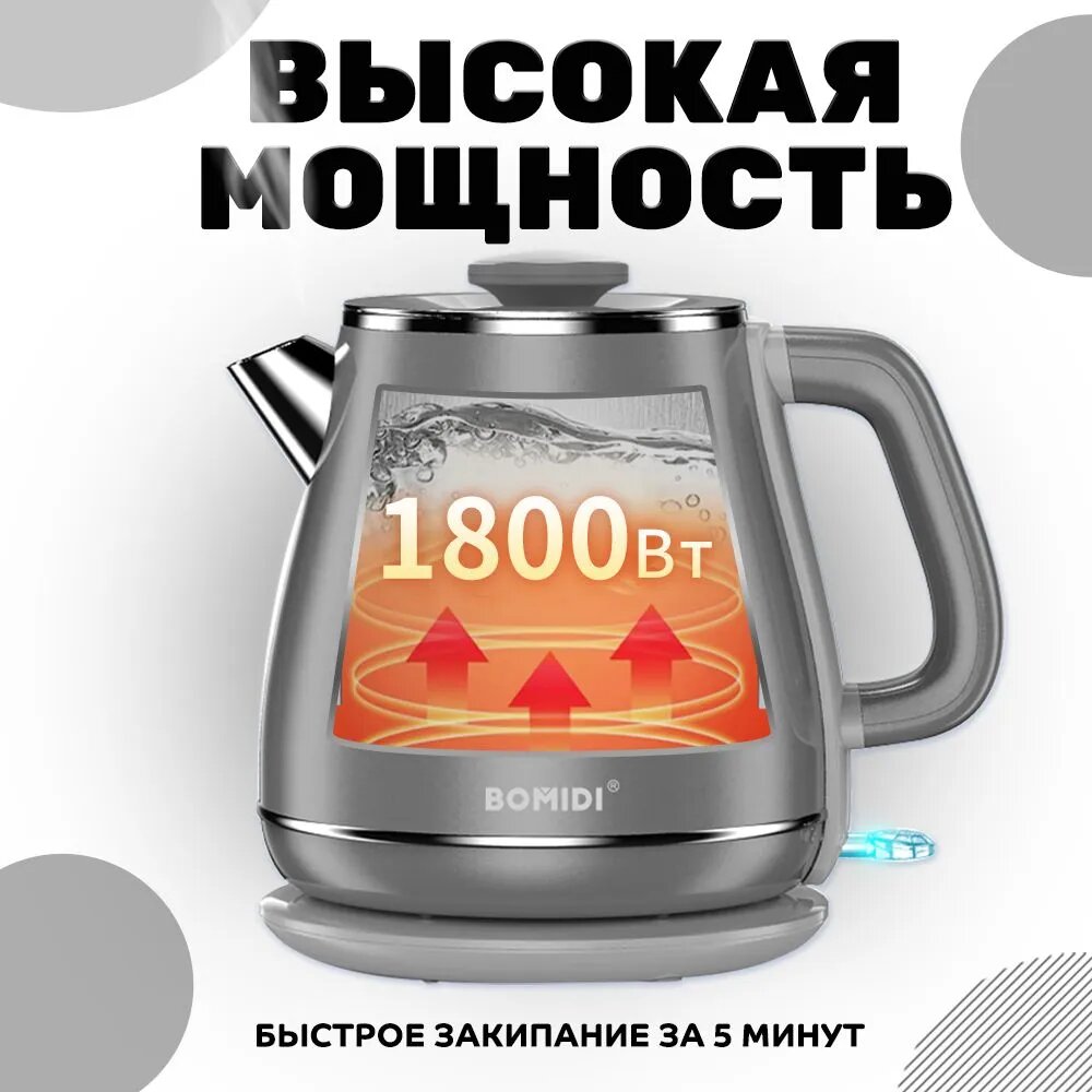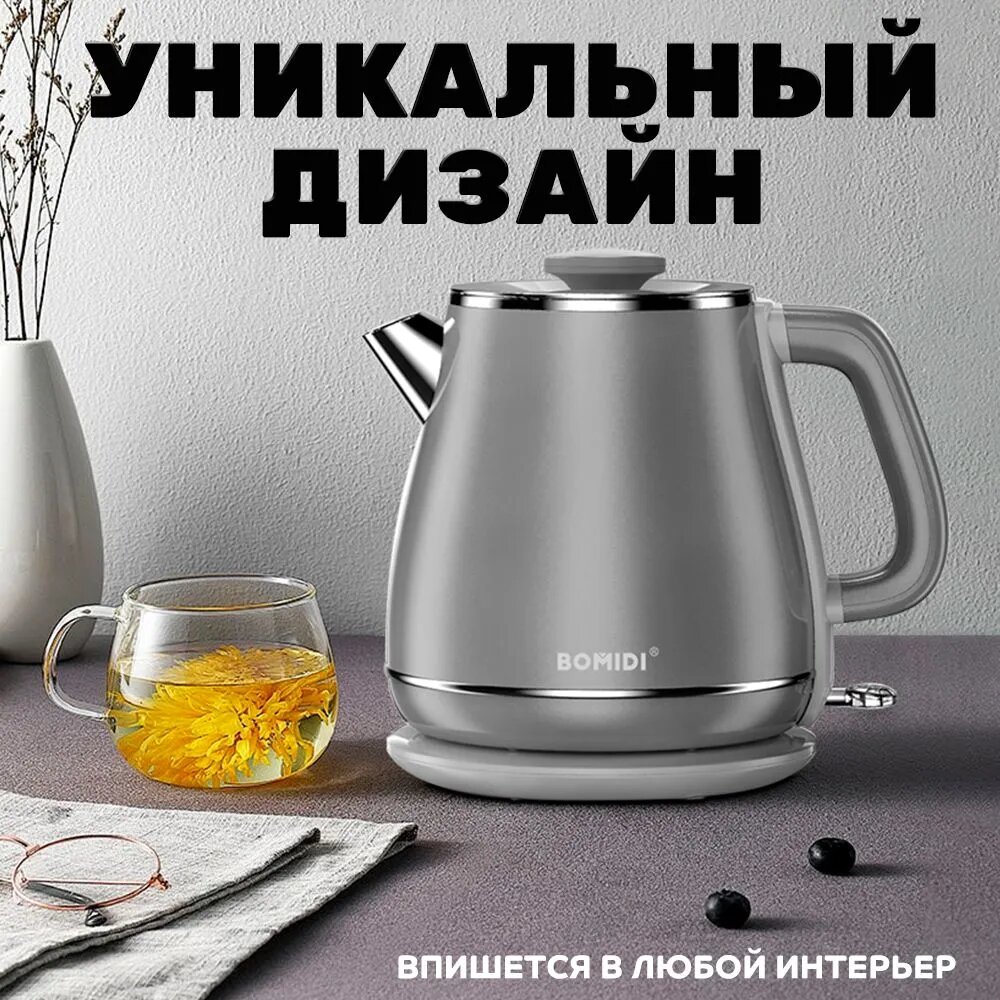 Купить Электрический чайник BOMIDI BMD1830, 1,7 л, 1500 Вт, серый,вкладыш из нержавеющей стали 304
