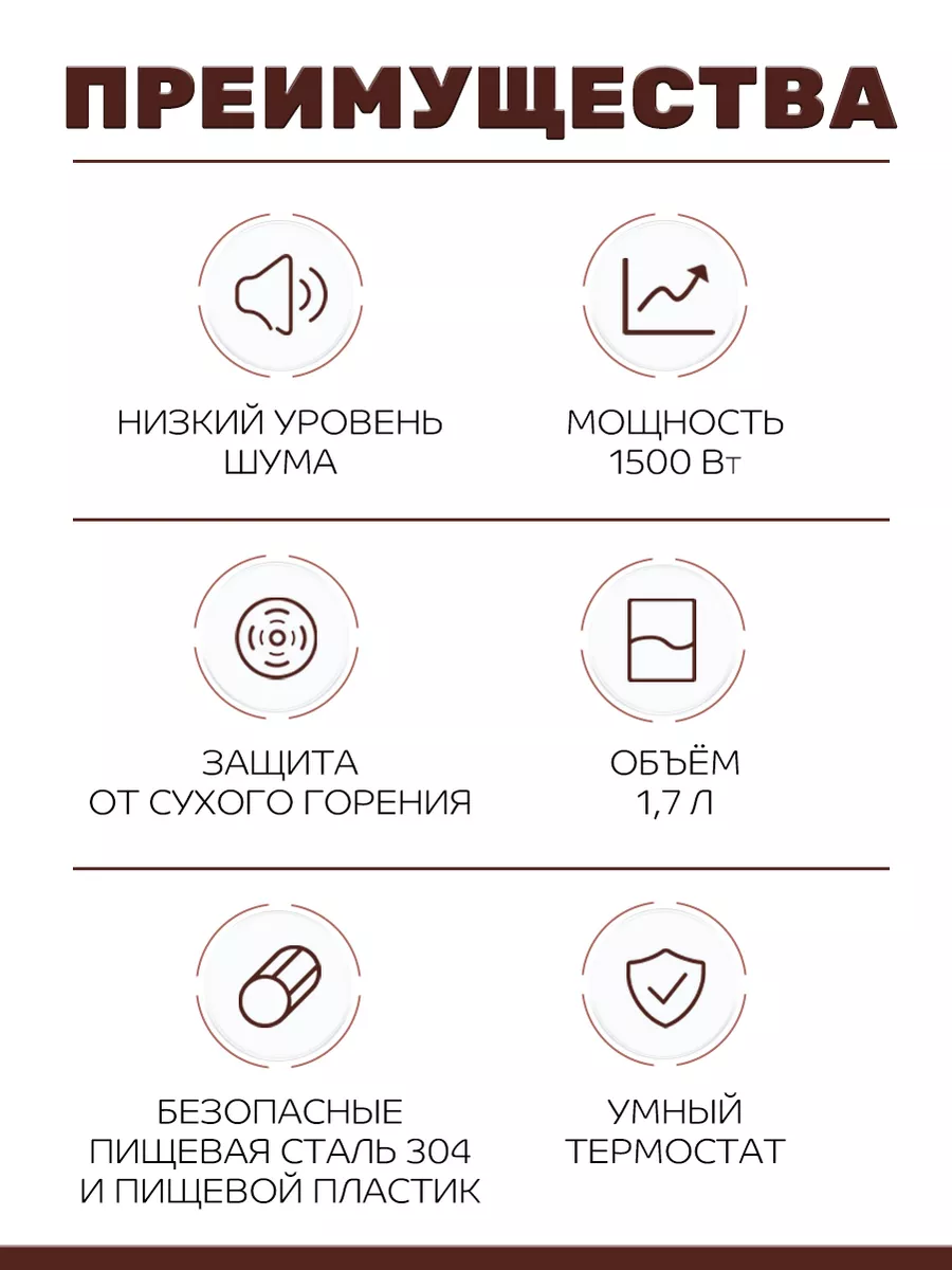 Электрический чайник BOMIDI BMD1831, 1,7 л, 1500 Вт, коричневый,вкладыш из нержавеющей стали 304