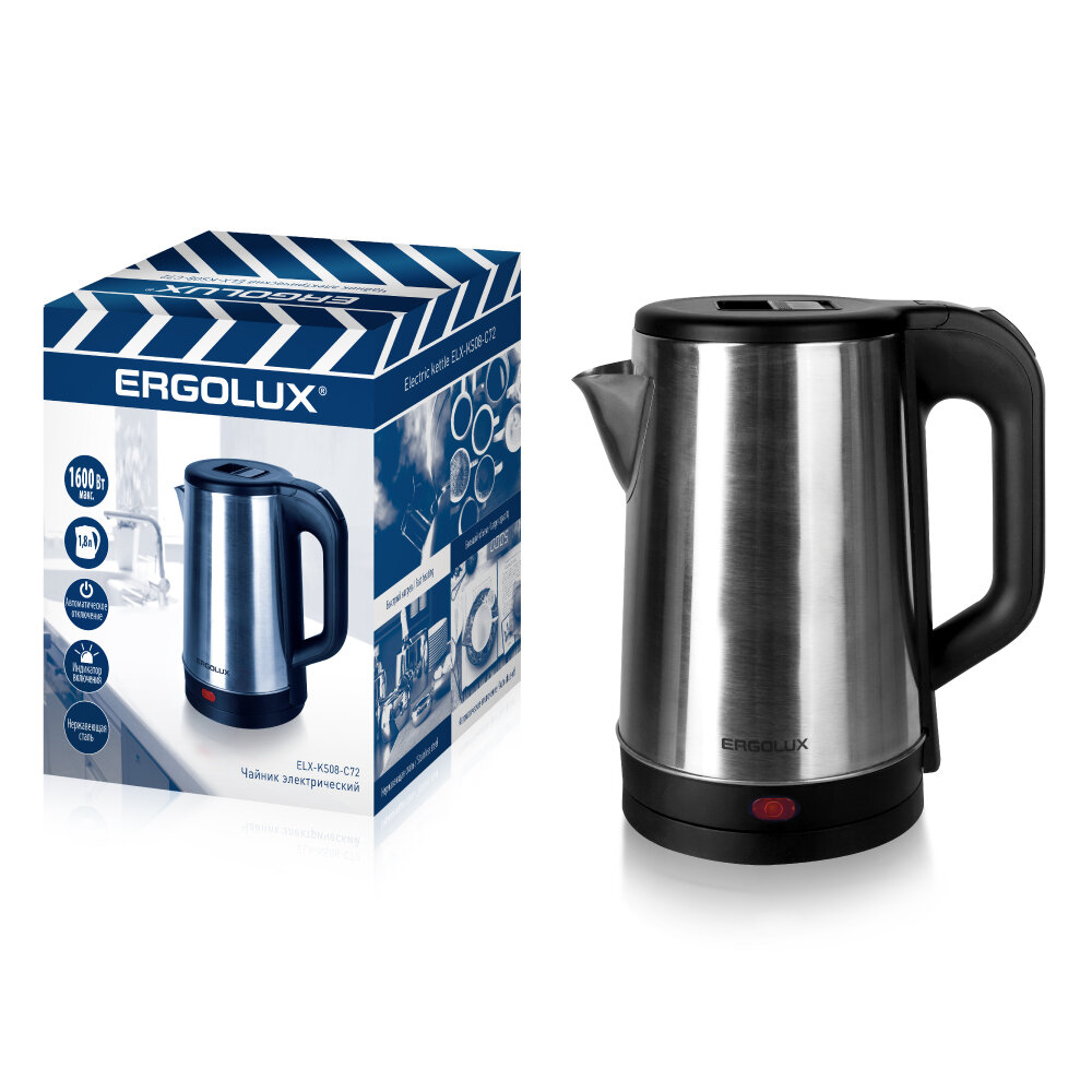 Купить Электрический чайник Ergolux, металлический, пластик, 1.8л, чёрный