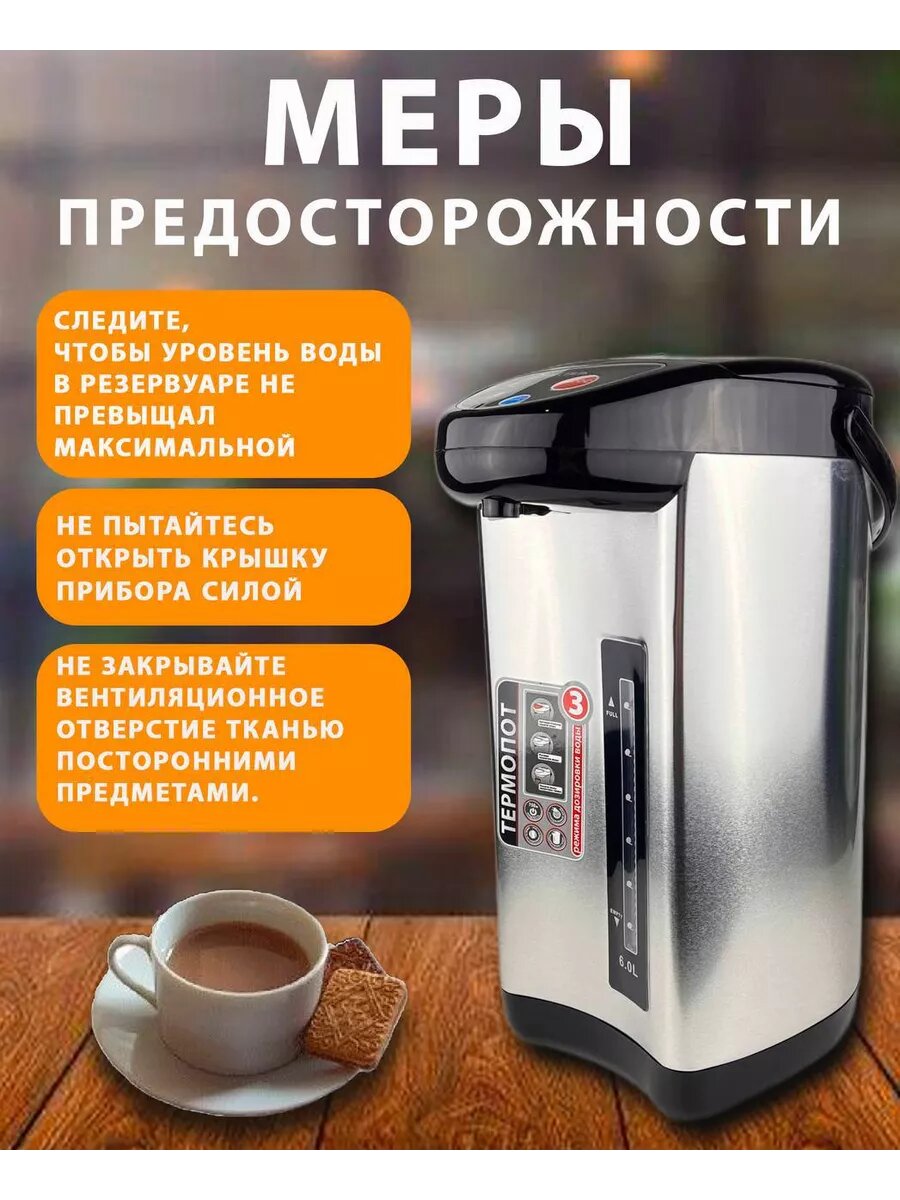 | Доп. опции термопота, чайника | автоматическое выключение, защита от перегрева, индикатор уровня воды |