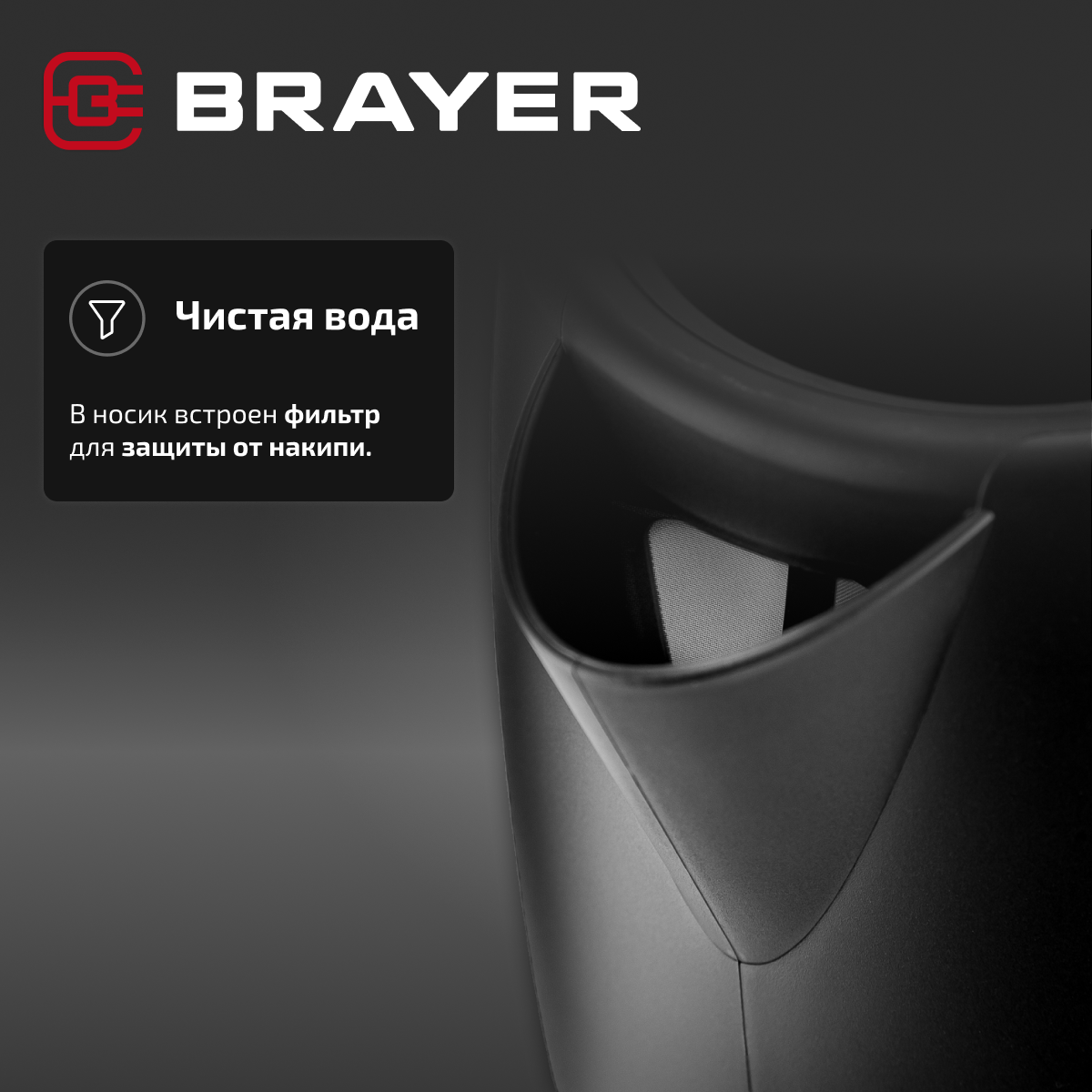 Электрический чайник BRAYER BR6103, черный, 1.7л, мощность 2200Вт, дисковый нагреватель интересное: