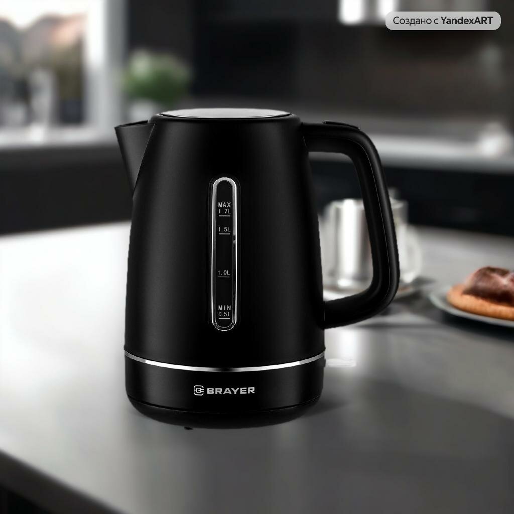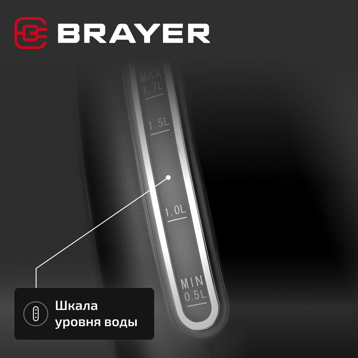 Чайник электрический BRAYER BR6104BK, 2200 Вт, 1,7 л, черный/пластик