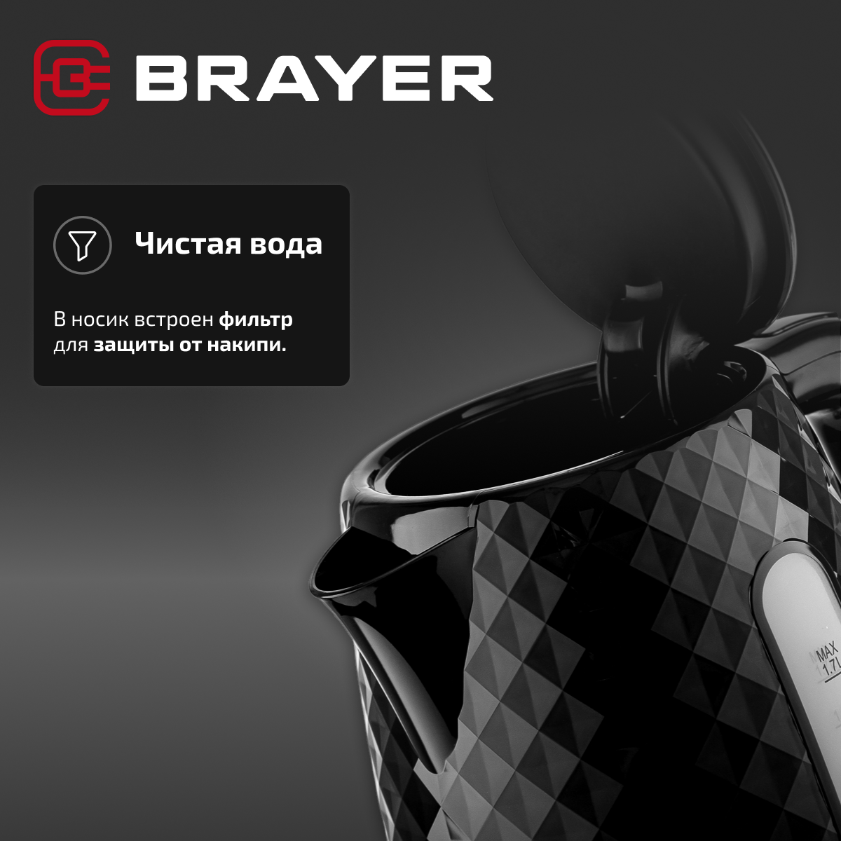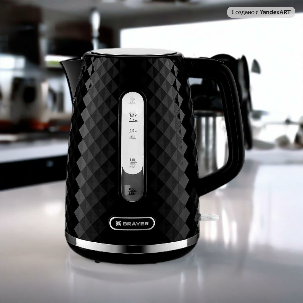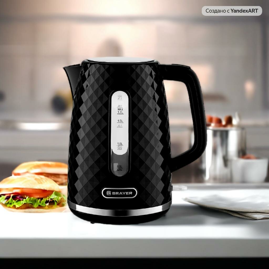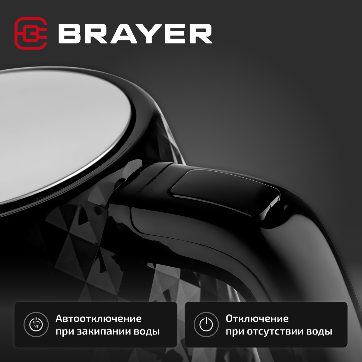 Чайник электрический BRAYER BR6104BK, 2200 Вт, 1,7 л, черный/пластик интересное: