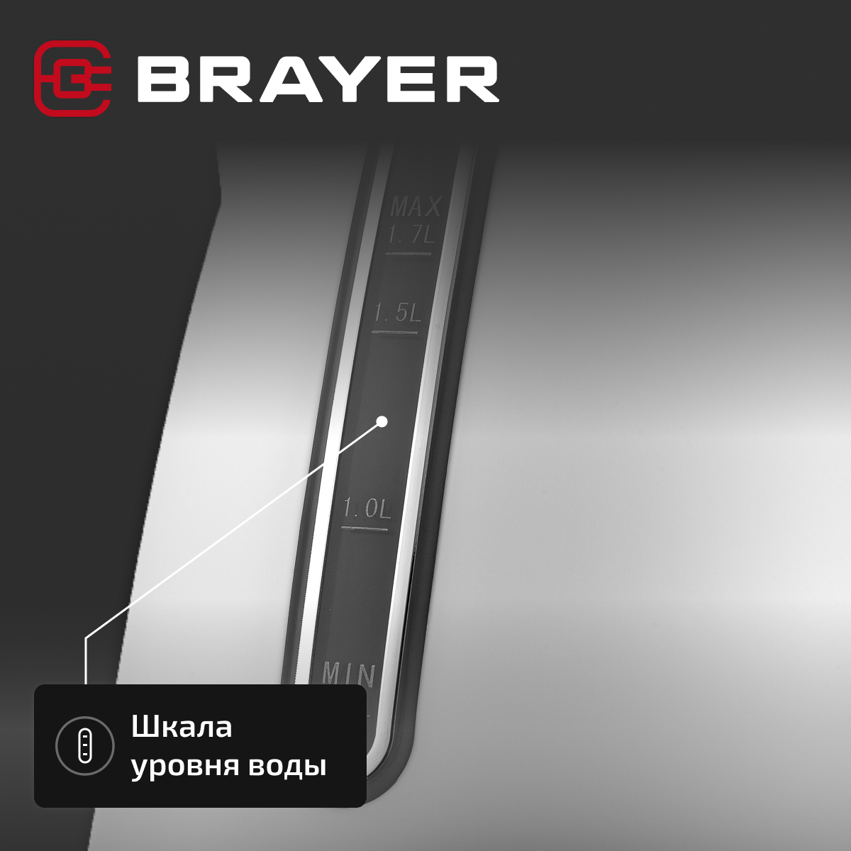Чайник электрический BRAYER BR6104BK, 2200 Вт, 1,7 л, черный/пластик