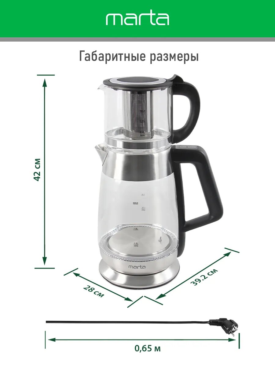 Купить Электрический чайник MARTA MT-4617 черный Чайный набор 2л