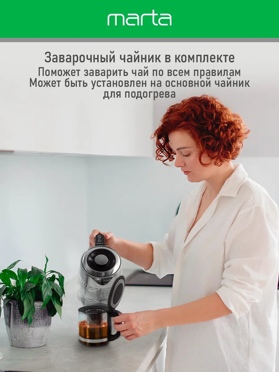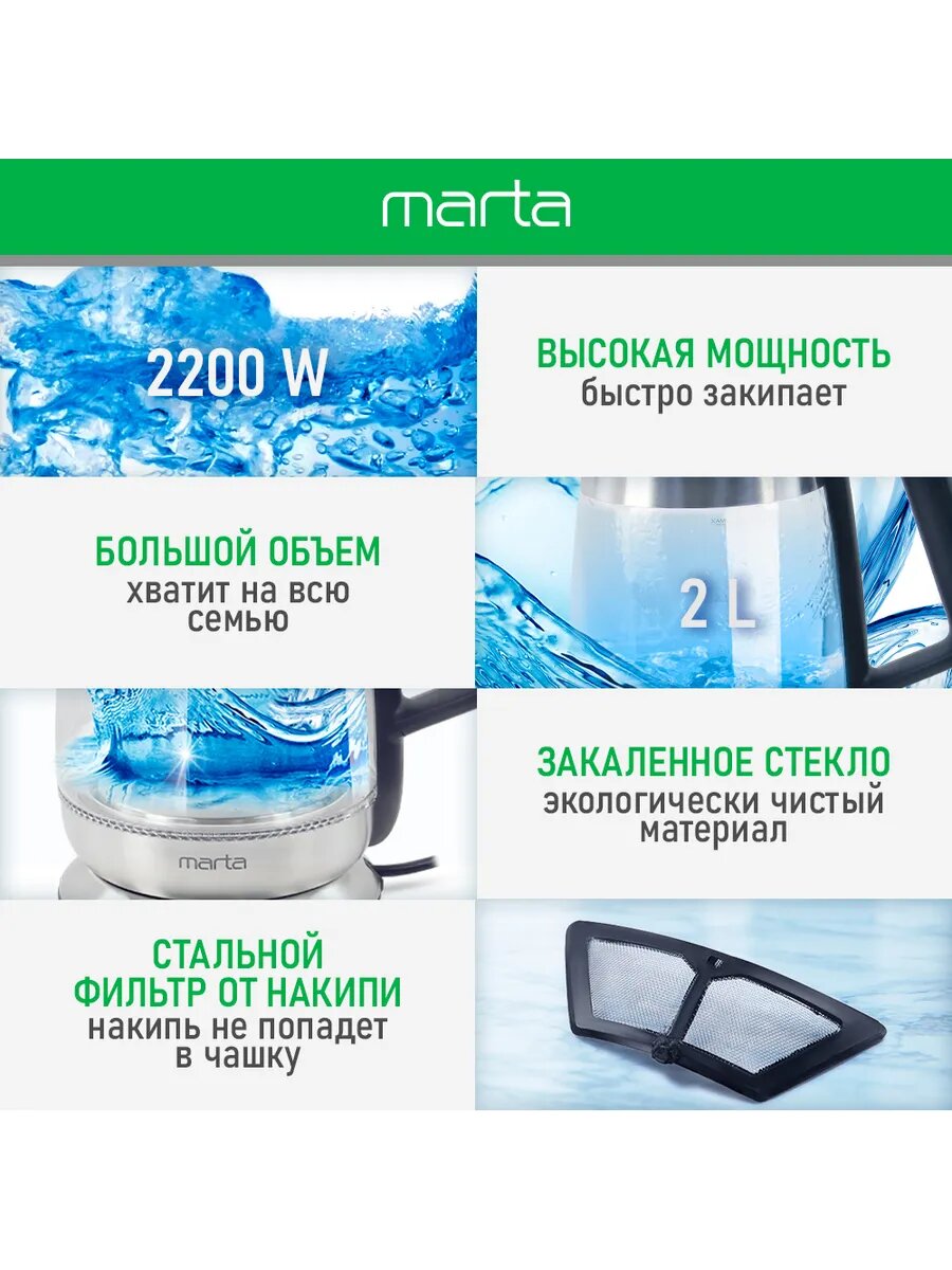 Электрический чайник MARTA MT-4617 черный Чайный набор 2л интересное: