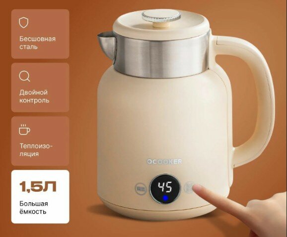 Чайник Qcooker Kettle CR-SH1501, бежевый, RU интересное: