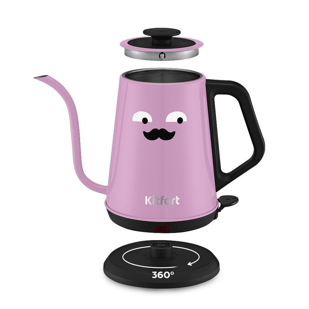 Чайник для варки кофе Kitfort КТ-6194-3 черно-лавандовый интересное: