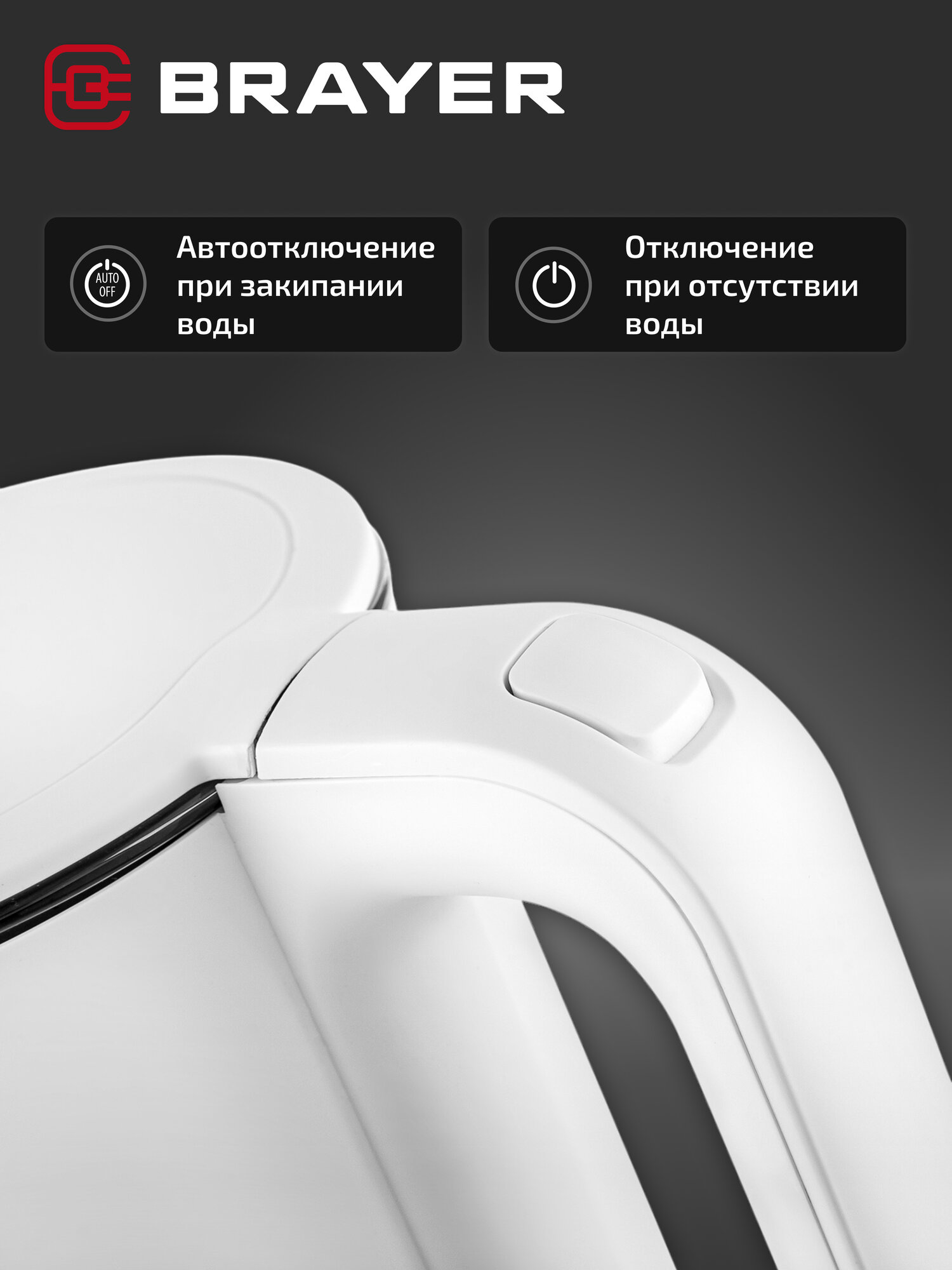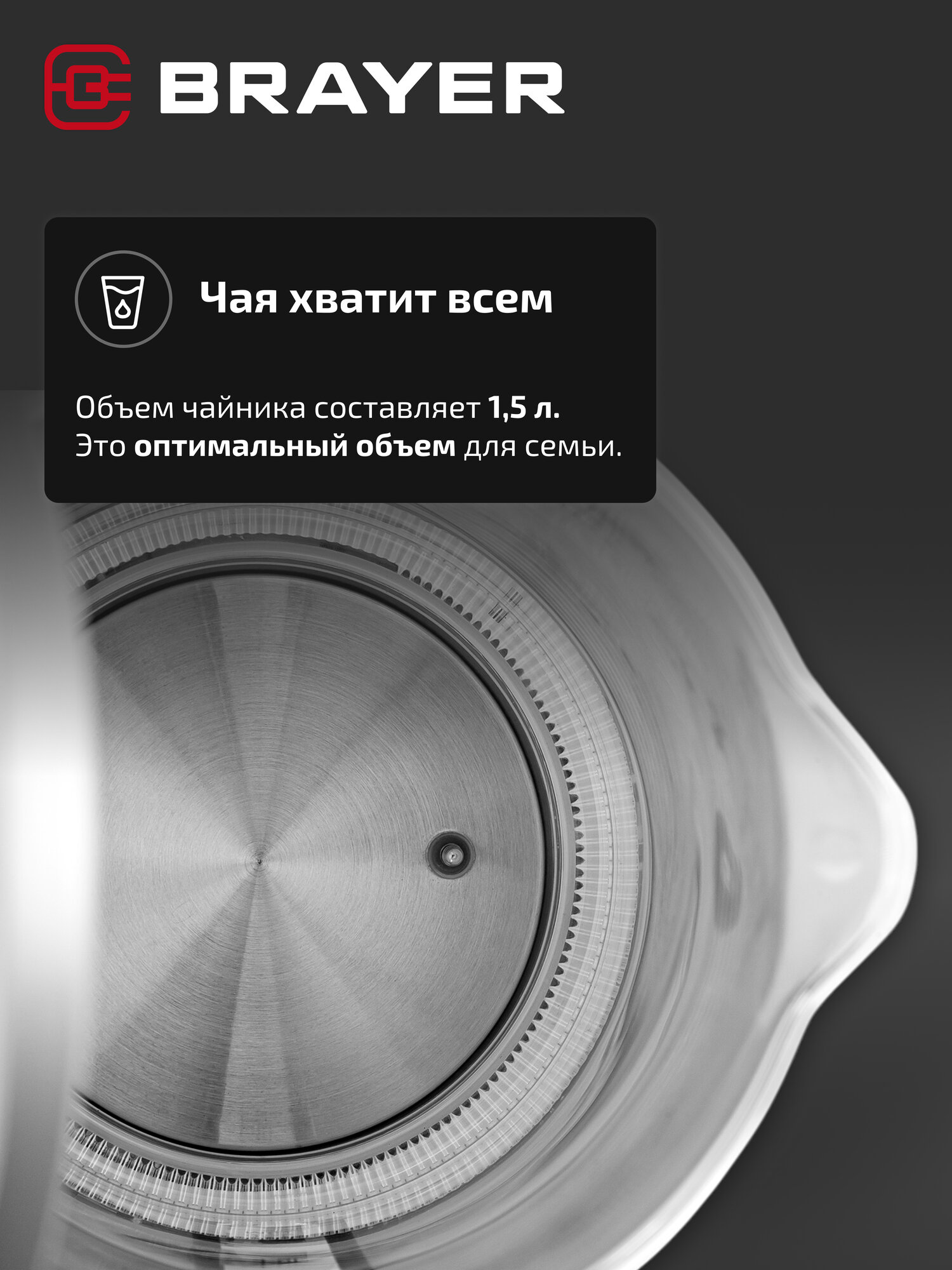 Чайник электрический BRAYER BR6100, Strix, 1500 Вт, 1,5 л, Cool Touch, cенсорное управление интересное: