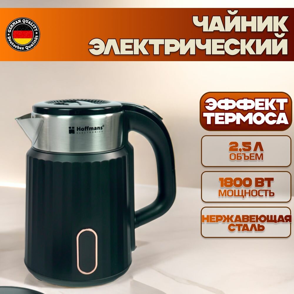 Hoffmans Электрический чайник 2.5л, черный матовый интересное: