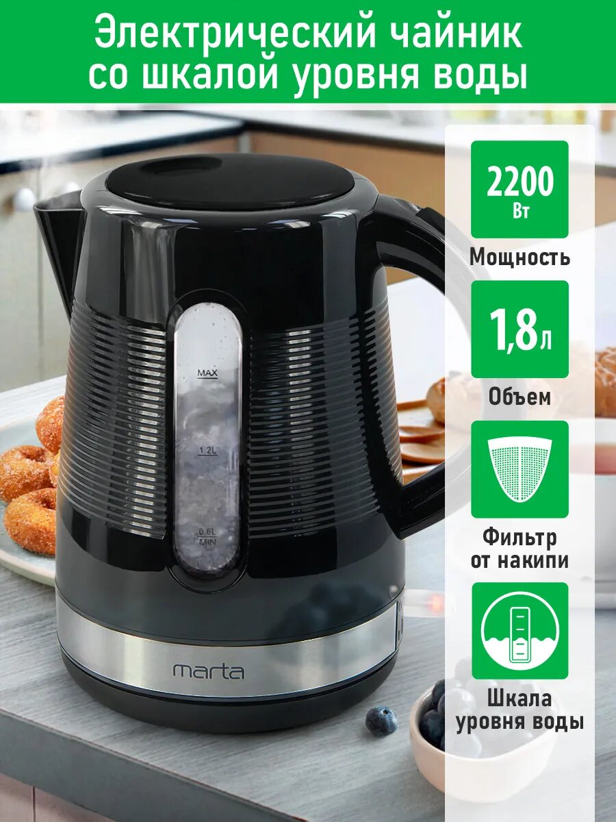 Купить Электрический чайник MARTA MT-4634 черный 1,8 л