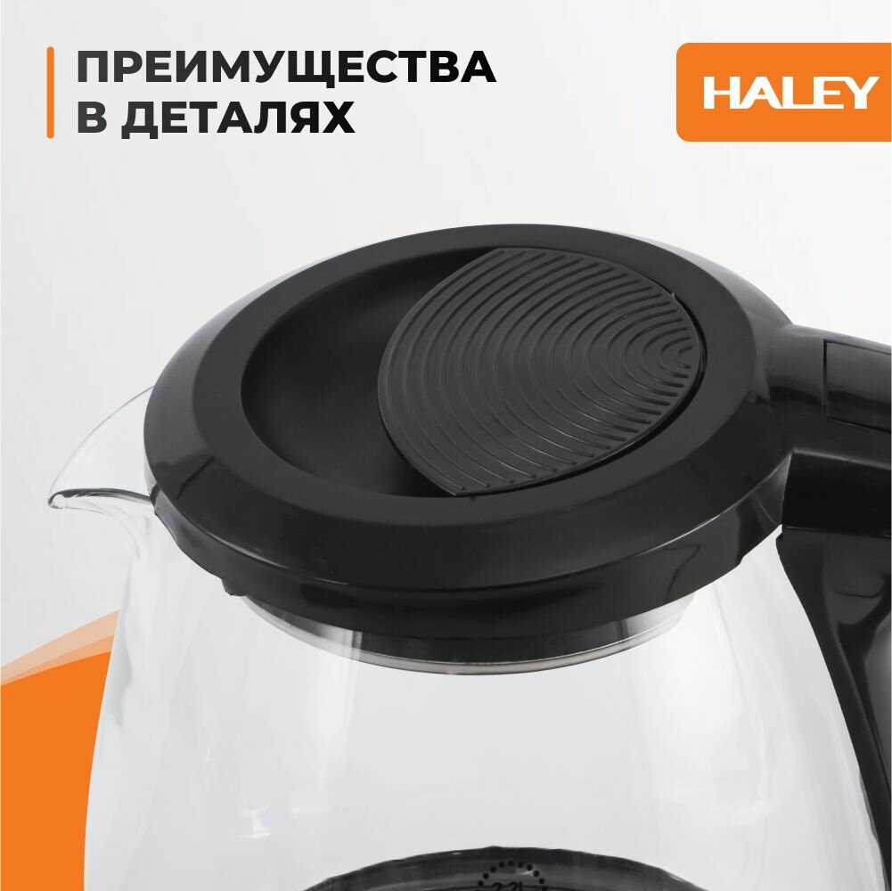 Электрический чайник HALEY-8886 черный жемчуг чайникобъемом 2.3 л, мощностью 1800 Вт, обеспечивающий быстрый кипяток и защиту от перегрева.