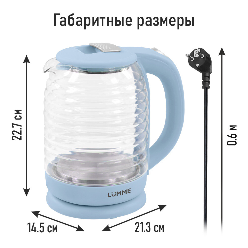 Электрический Чайник LUMME LU-4102, голубой, стекло, LED-подсветка, 1800Вт, 2л интересное:
