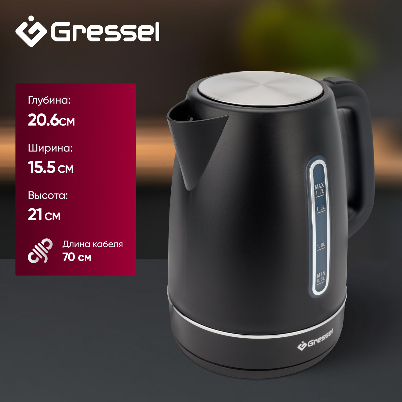 Купить Электрический чайник Gressel GRK-1113, 1.7л, 2200Вт, защита от перегрева, контроллер Strix, черный