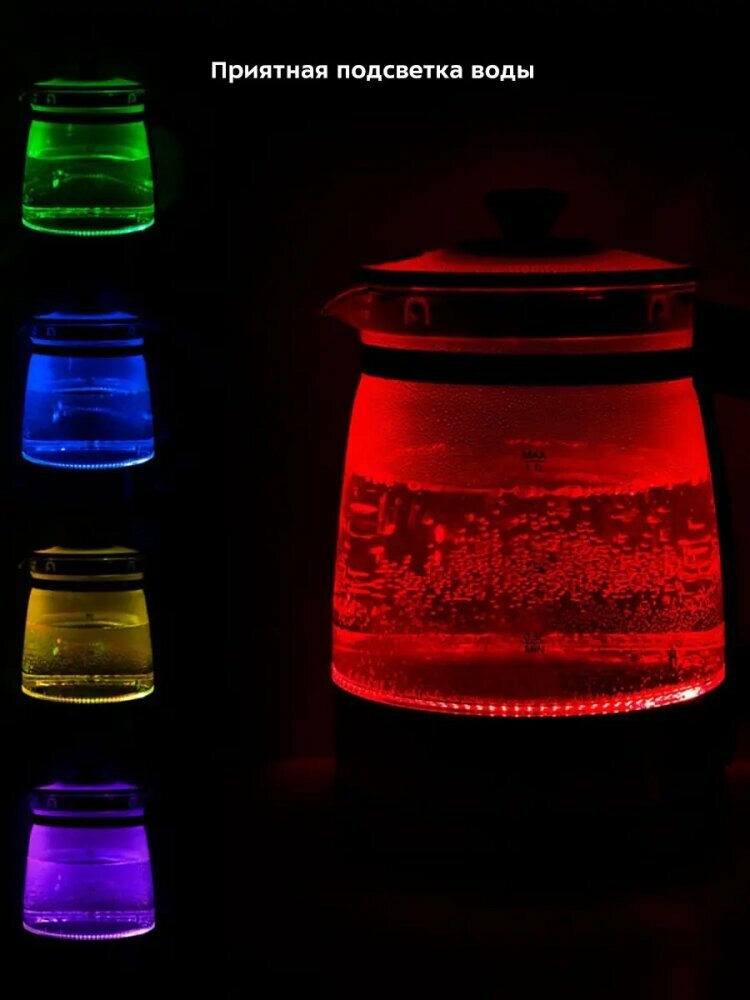 Чайник электрический стеклянный с подсветкой КТ-6119 - 1.7 л интересное: