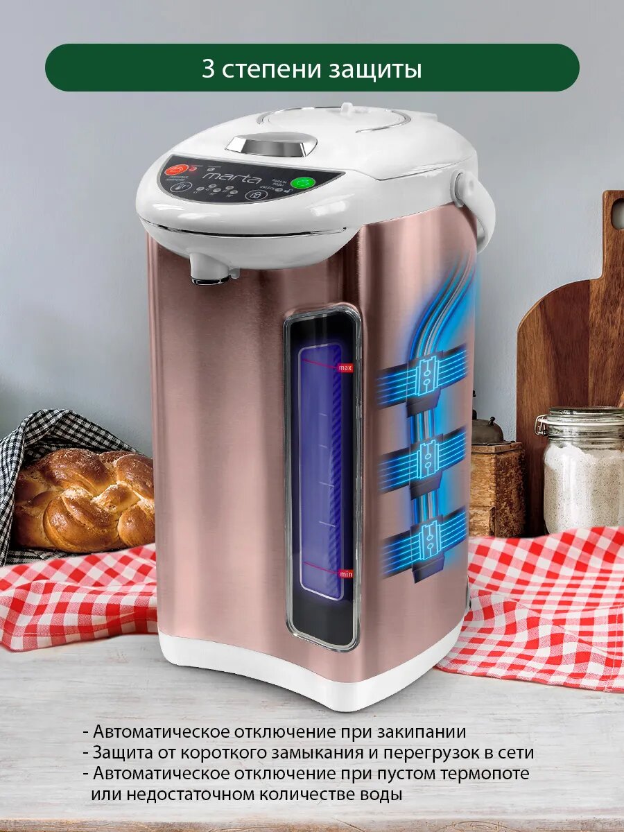 Термопот MARTA MT-1999 розовый опал с электро-насосом и ручной помпой 5.5 л 1000 Вт интересное: