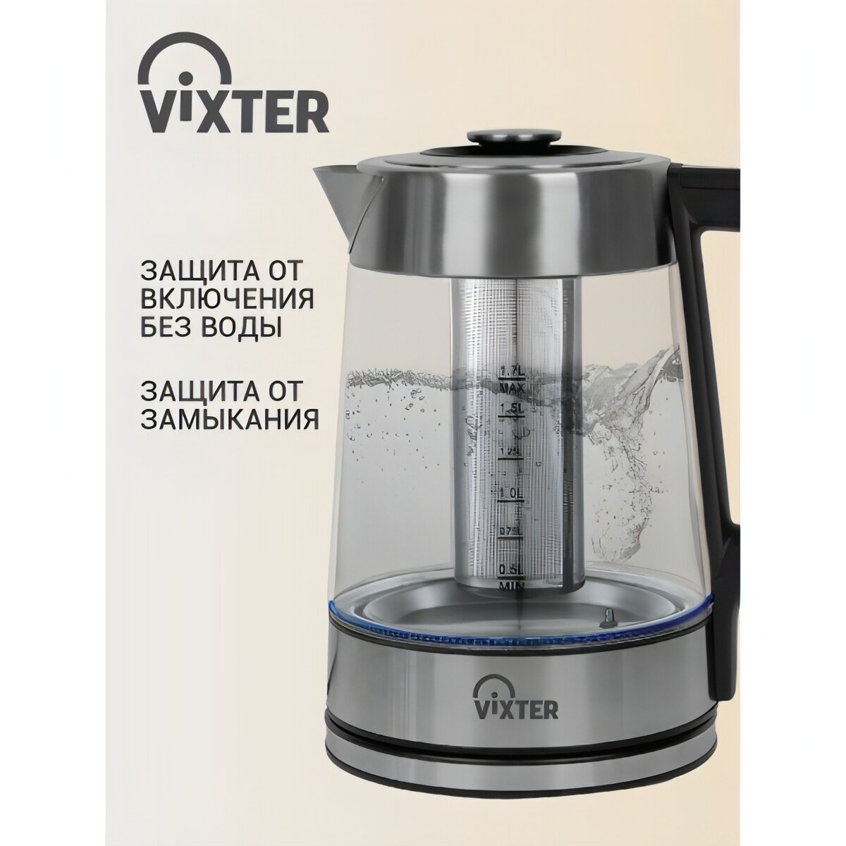 Чайник электрический VIXTER KTP-1345 с металлической колбой и ситом для заваривания