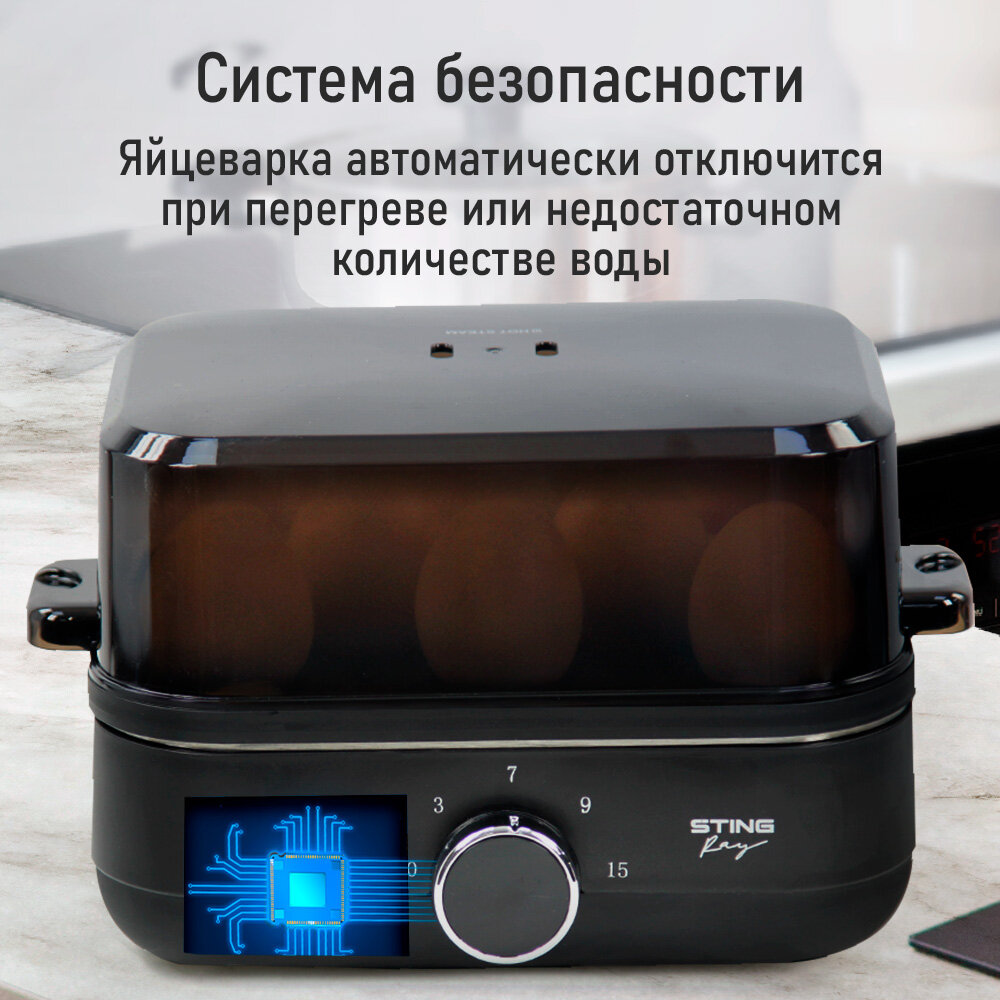 Пароварка яйцеварка STINGRAY ST-EC900B черный интересное: