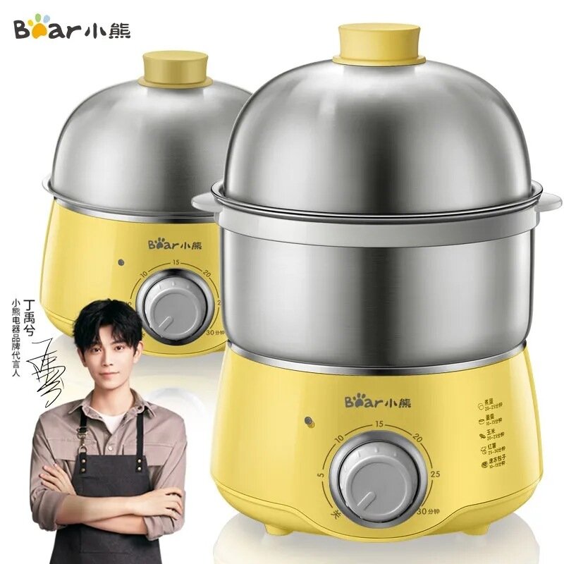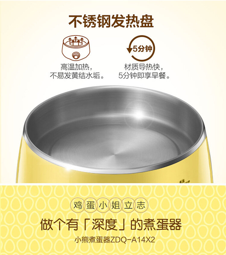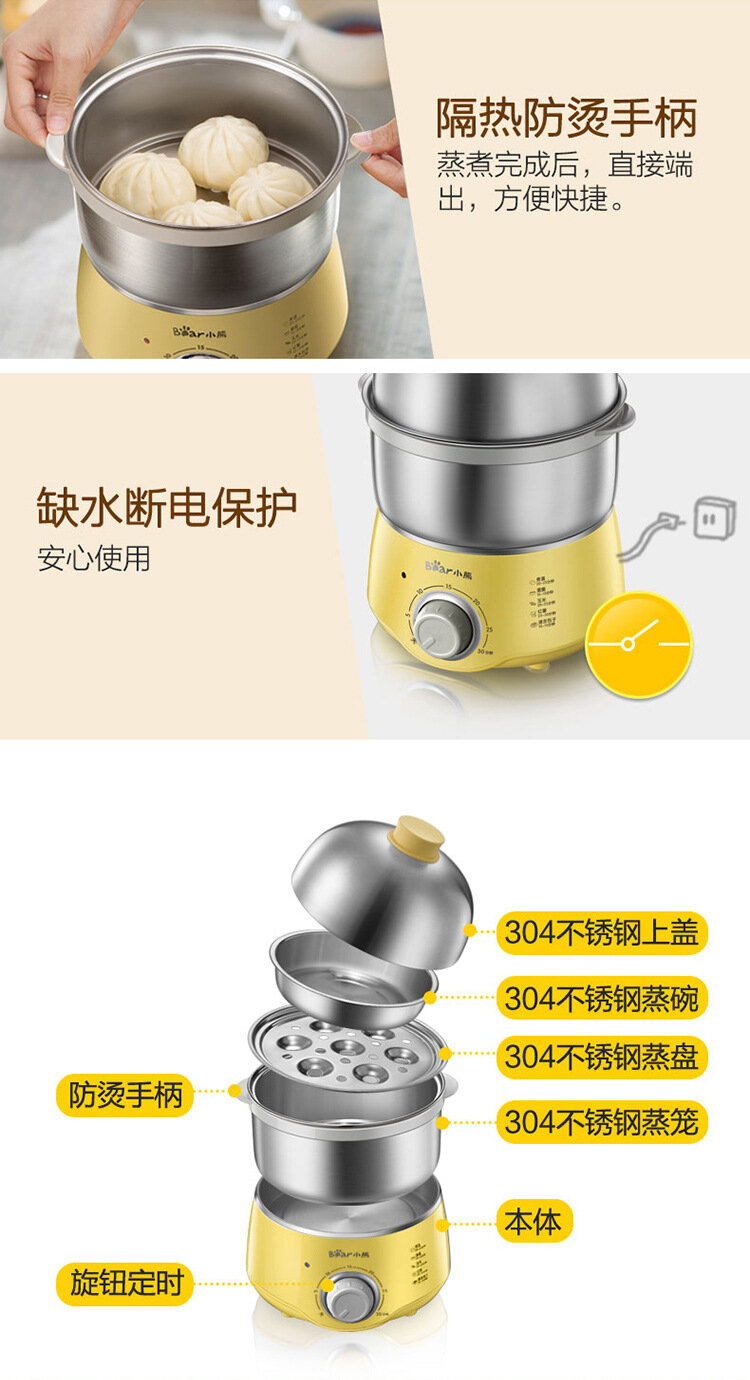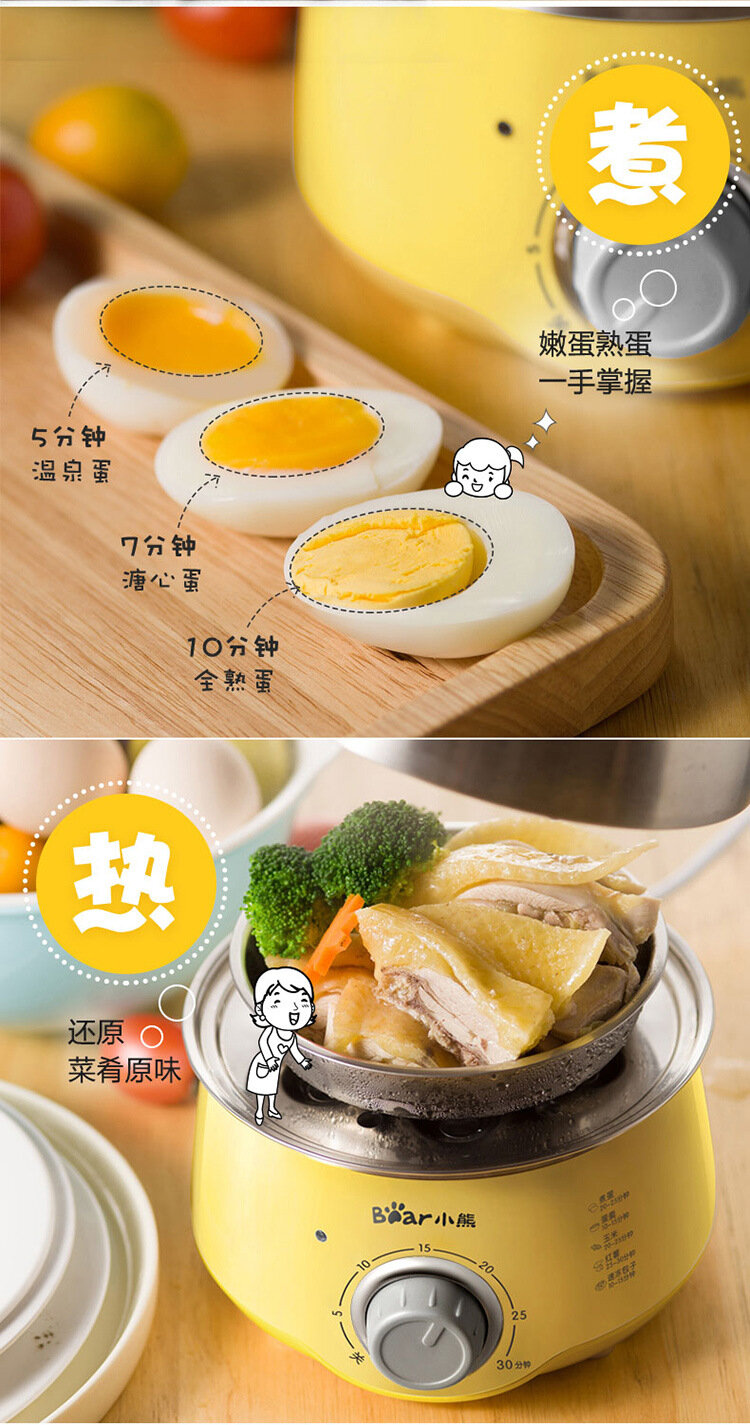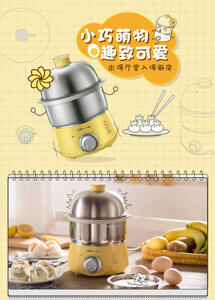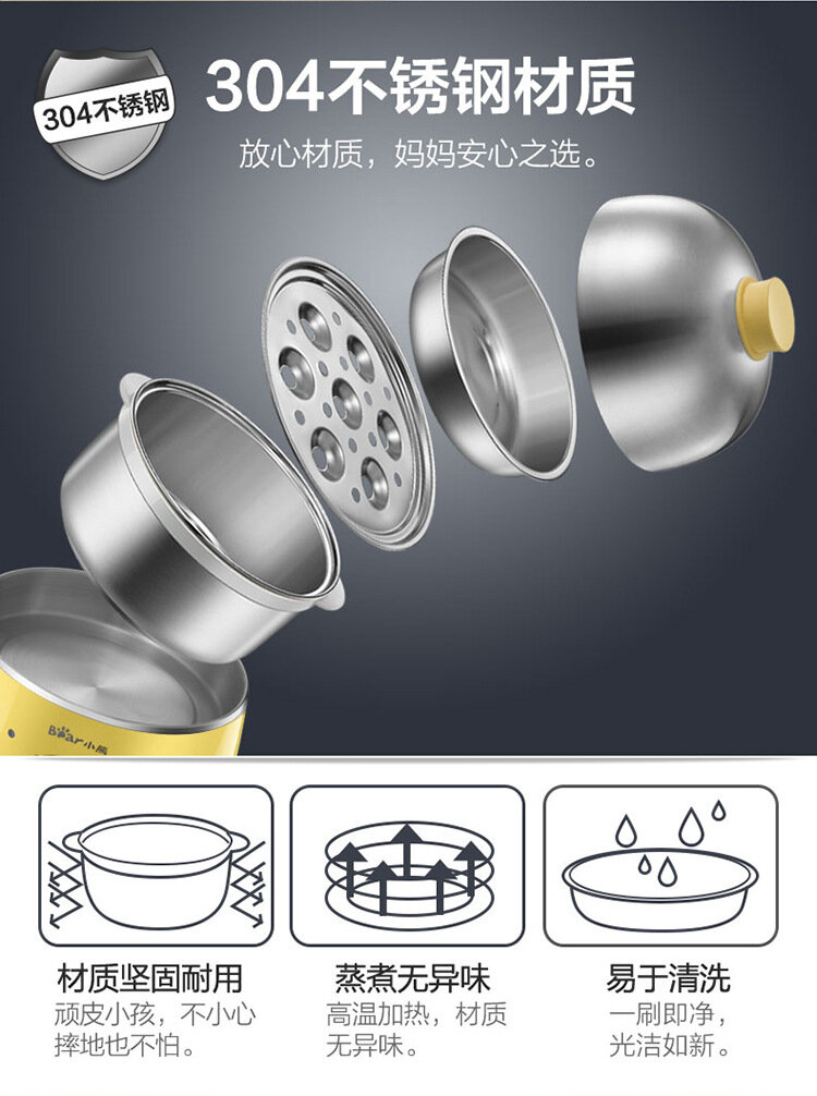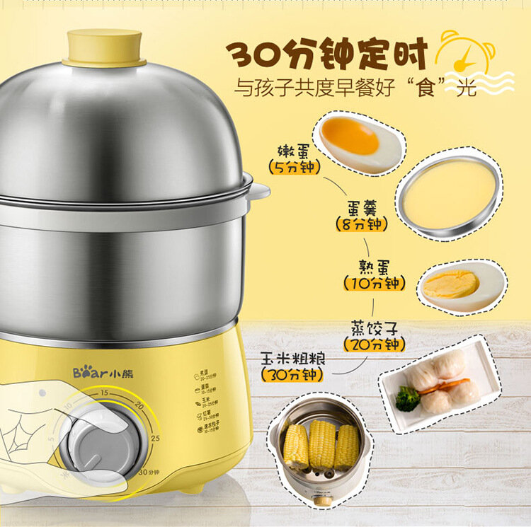 Машина для приготовления завтрака "Bear egg cooker", двухслойная, нержавеющая сталь, защита от высыхания, желтая интересное: