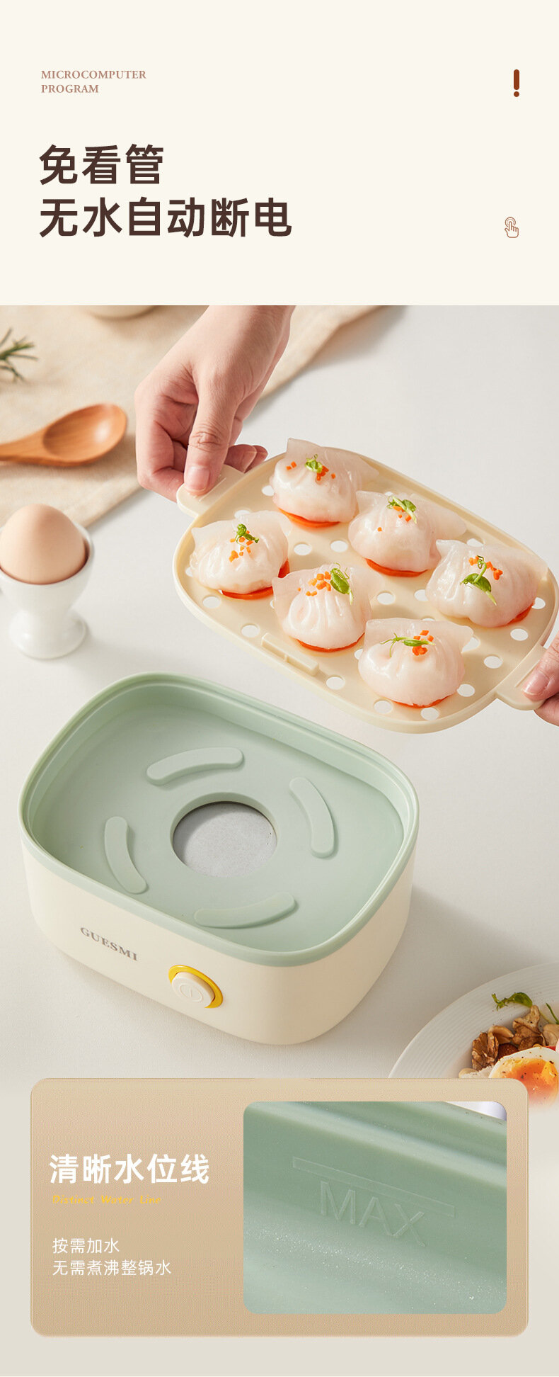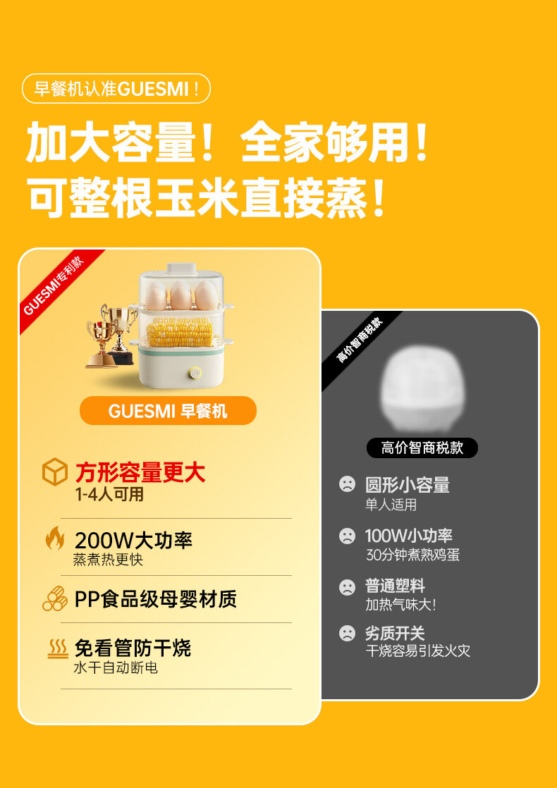 Мини-яйцеварка GUESMI Джунми, 200Вт, 4-6 яиц, автоматическое выключение