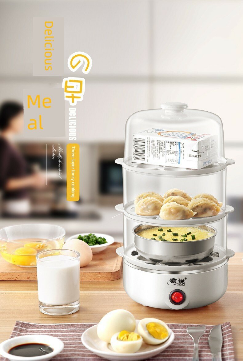 Яйцеварка автоматическая трехслойная белая с чашей из нержавеющей стали