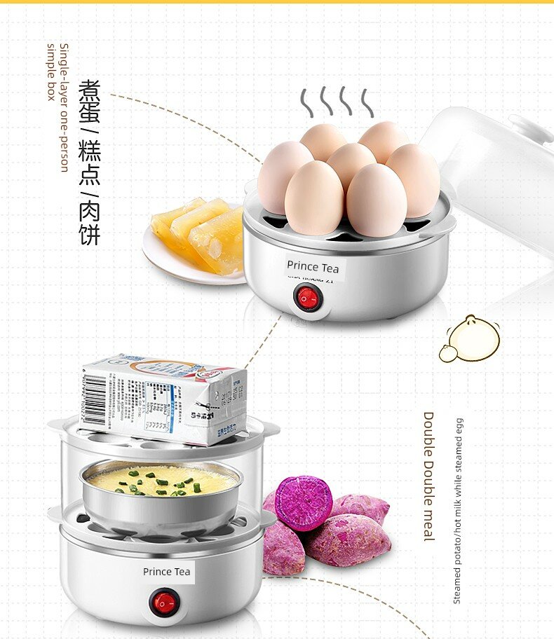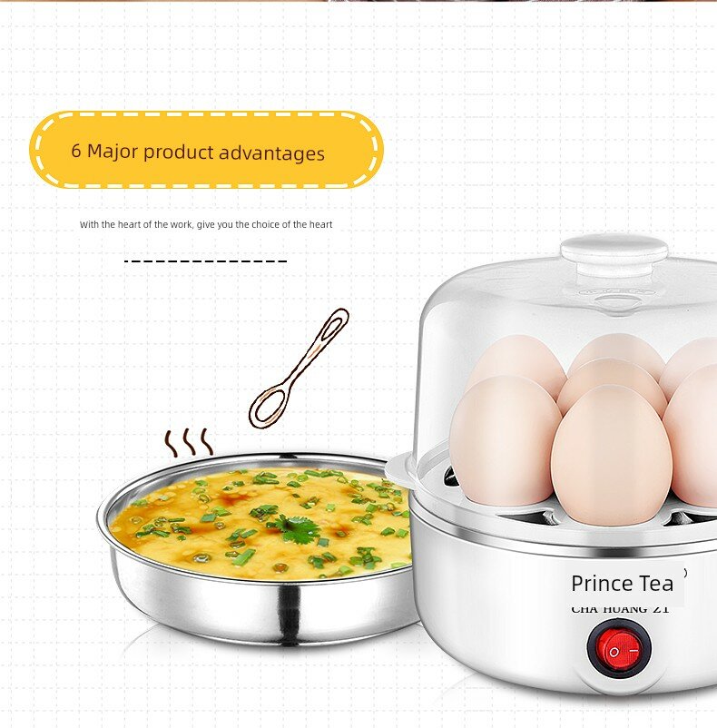| Дополнительная информация | автоматическое отключение, 350 вт, пищевой материал, нагревательная пластина из нержавеющей стали, можно готовить на пару 7 яиц, мерный стакан, однокнопочный переключатель |