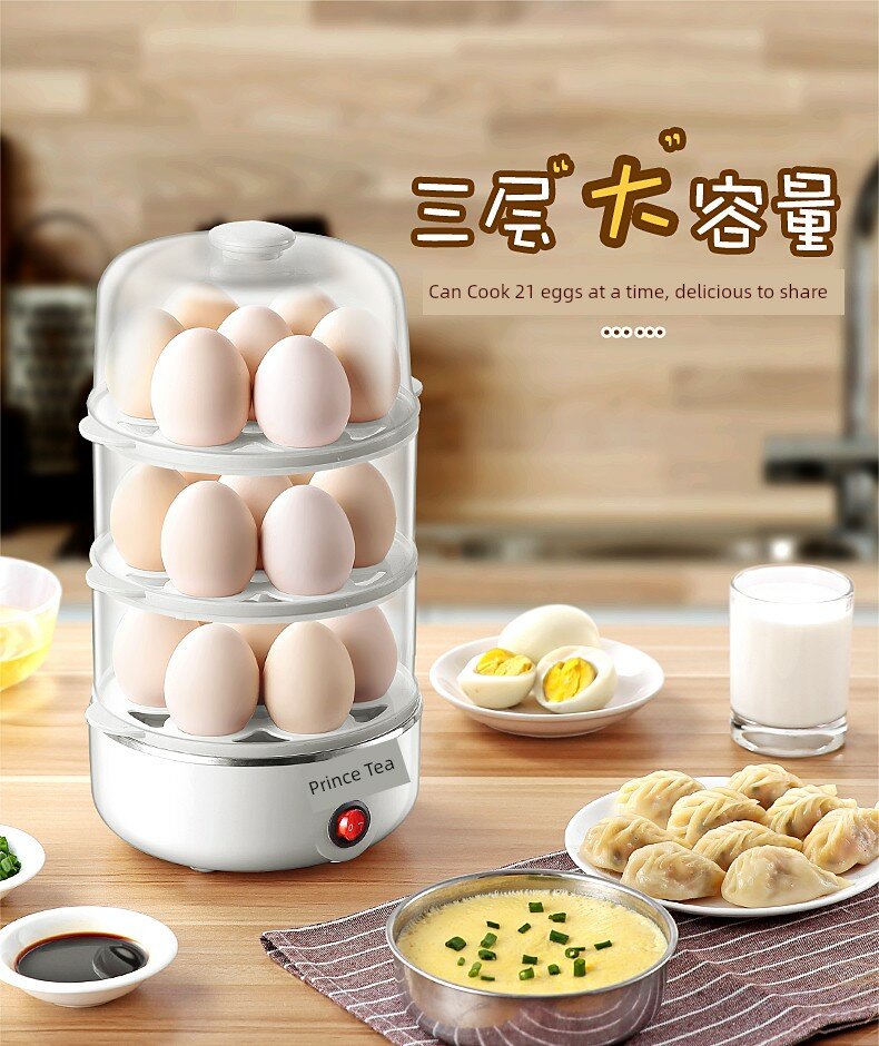 Яйцеварка автоматическая трехслойная белая с чашей из нержавеющей стали