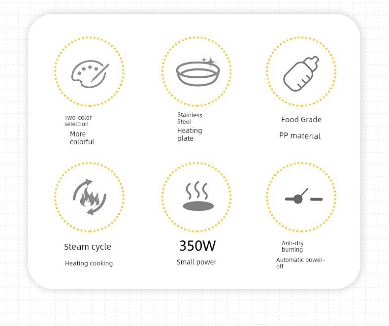 | Дополнительная информация | автоматическое отключение, 350 вт, пищевой материал, нагревательная пластина из нержавеющей стали, можно готовить на пару 7 яиц, мерный стакан, однокнопочный переключатель |