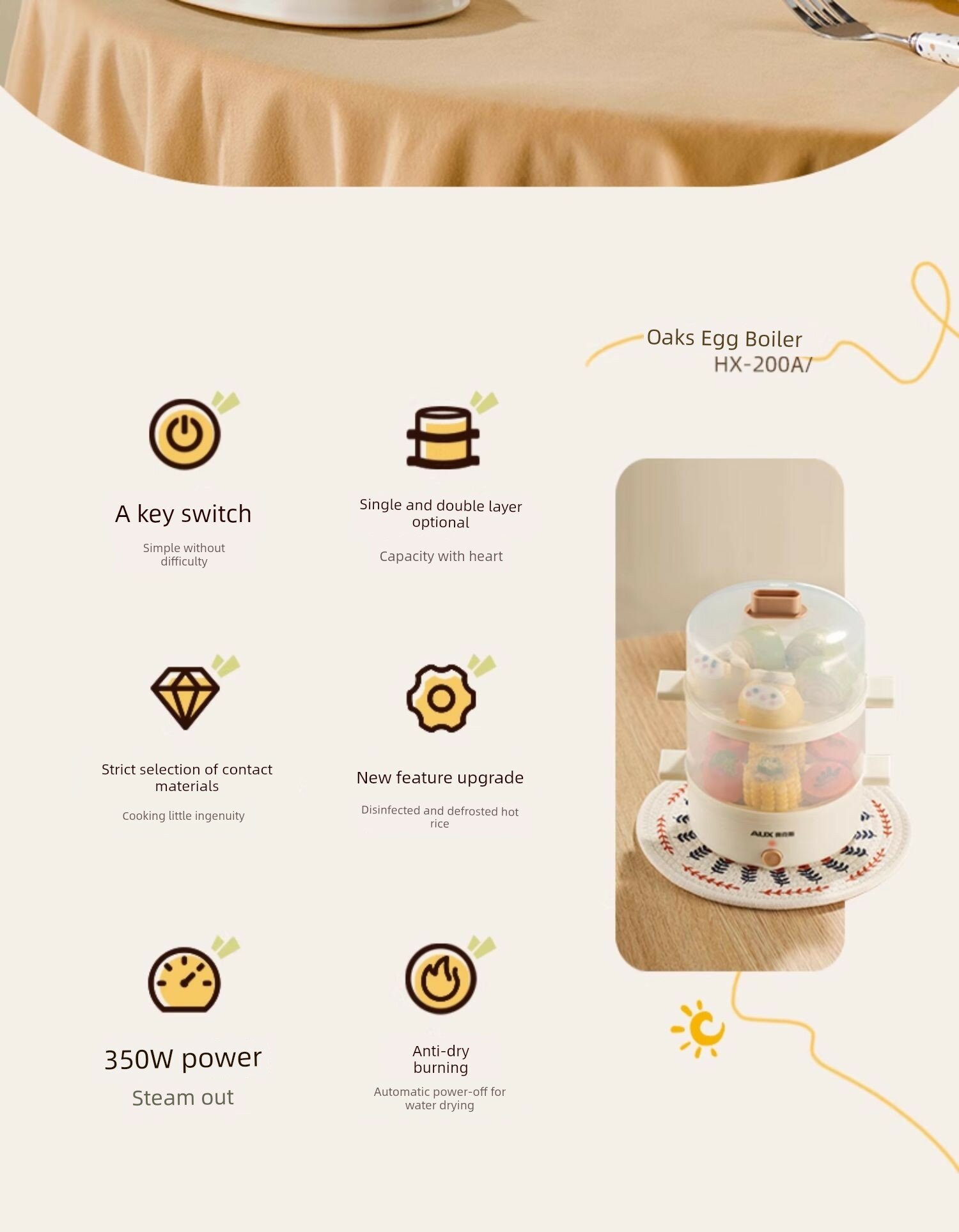 | Дополнительная информация | автоматическое отключение при высыхании воды, защита от сухого горения, мощность 350 Вт, переключатель с одной кнопкой, опционально двойной слой, чаша из нержавеющей стали |