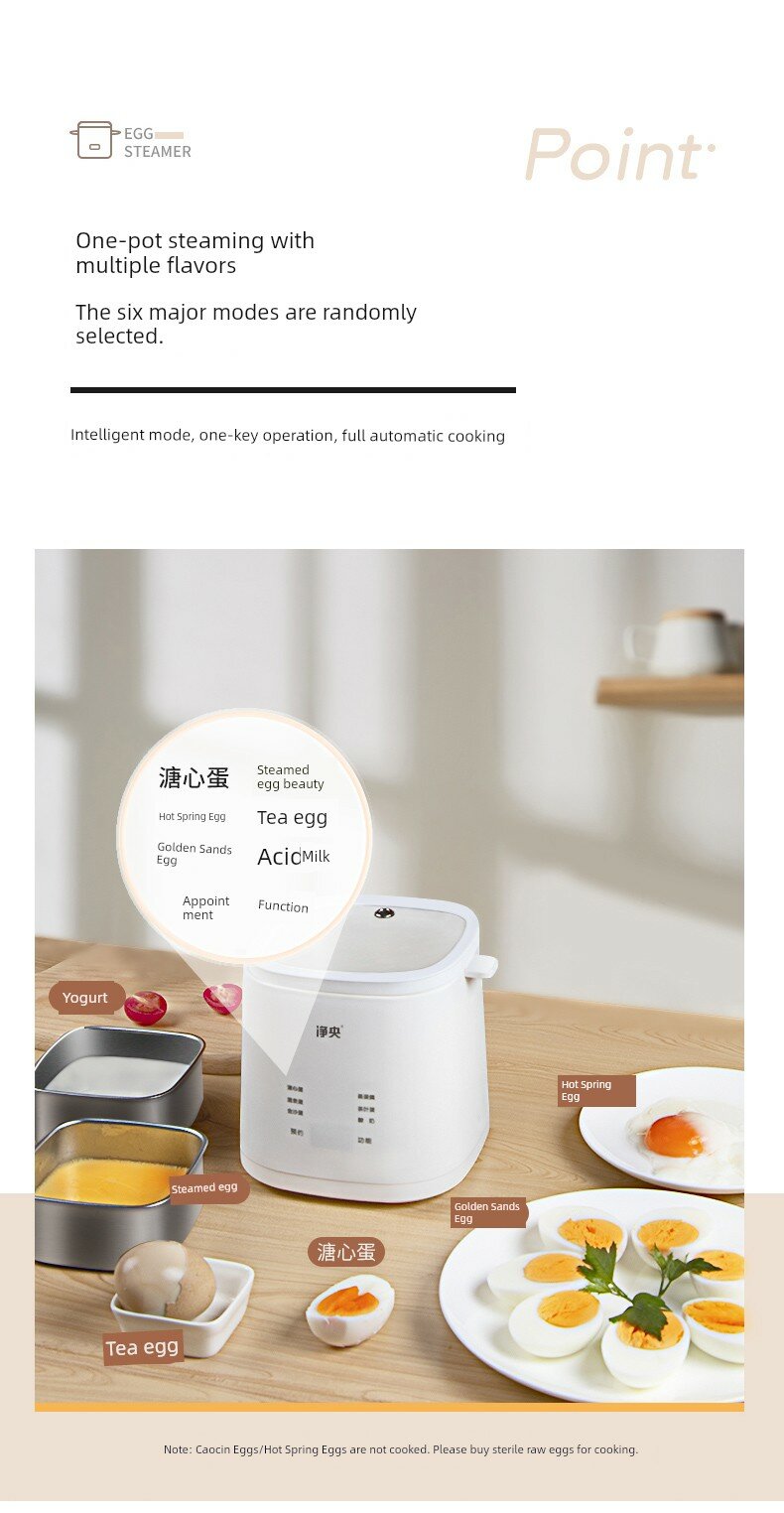 | Дополнительная информация | шесть основных режимов, интеллектуальное резервирование, точный контроль температуры, сенсорное управление одной кнопкой, пароварочная чаша из нержавеющей стали 304, подходит для молочнокислых бактерий (выпечка йогурта), напряжение: 220 в, мощность: 300 вт, вместимость: подставка для яиц на 4 яйца/чаша ~350 мл |