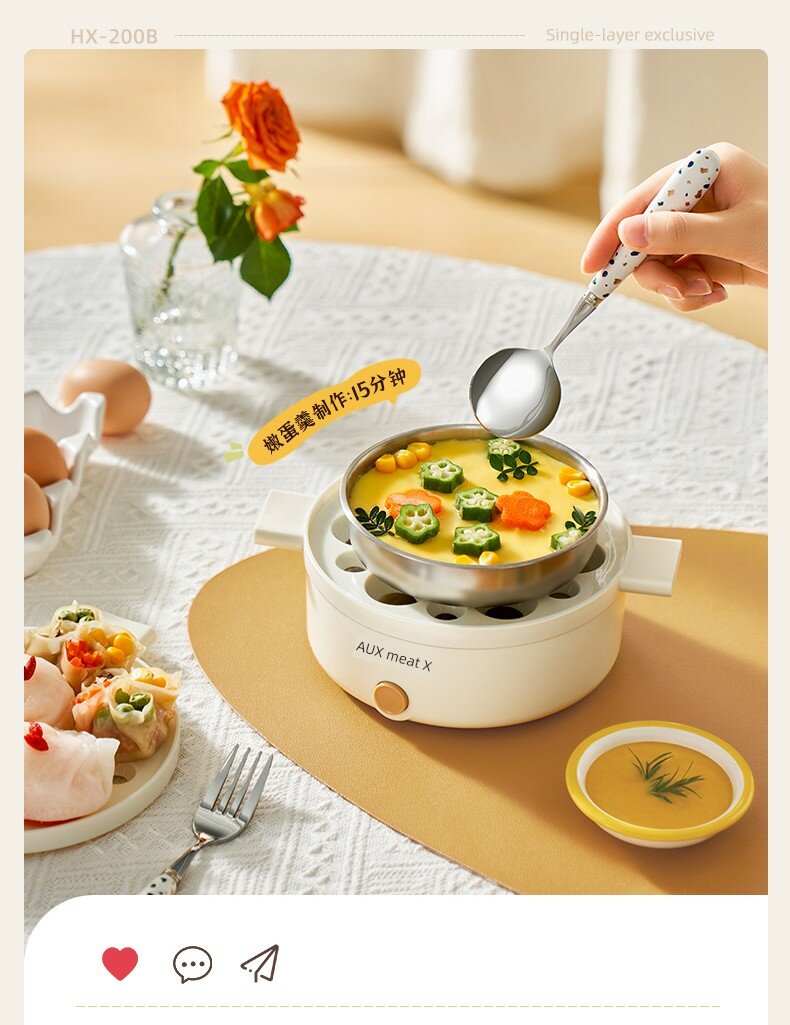 Электрическая яйцеварка, белая, двухслойная, стальная чаша
