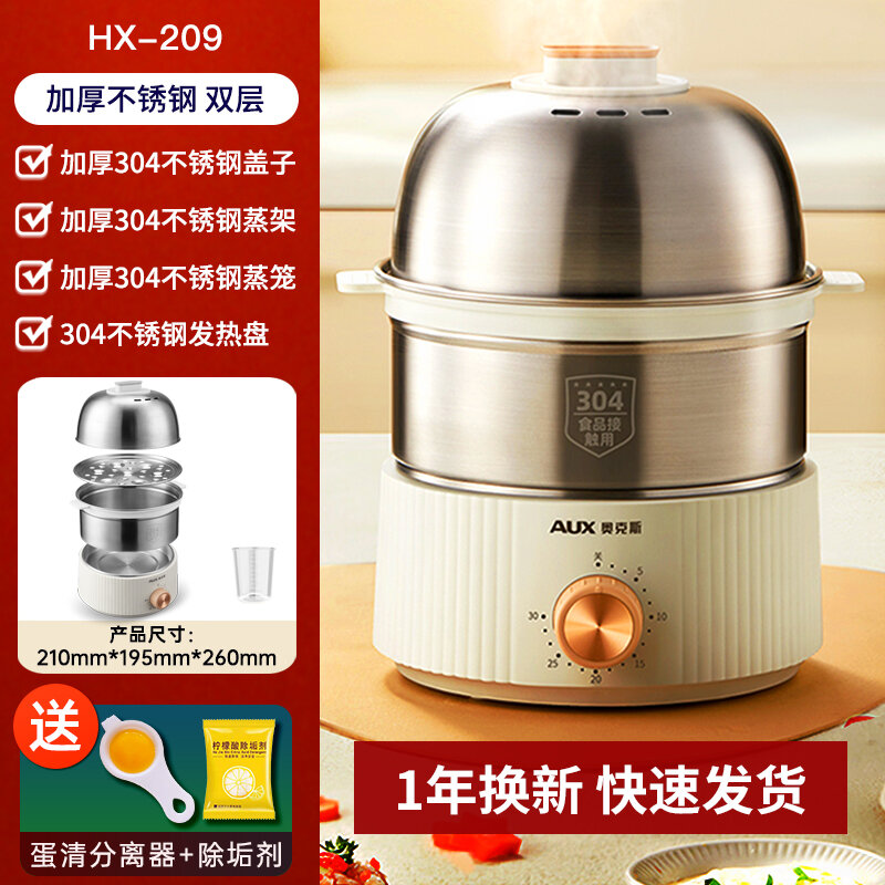 Электрическая яйцеварка, белая, двухслойная, стальная чаша