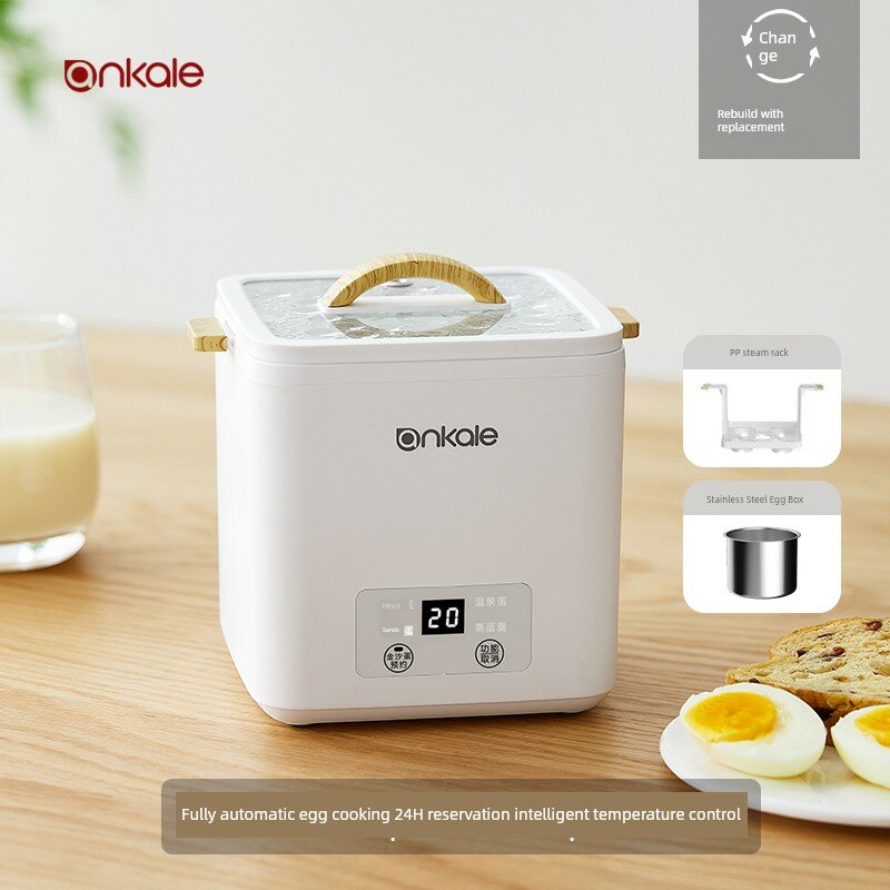 Яйцеварка электрическая, 6 яиц, белая, с подставкой и контейнером из нержавеющей стали для приготовления на пару