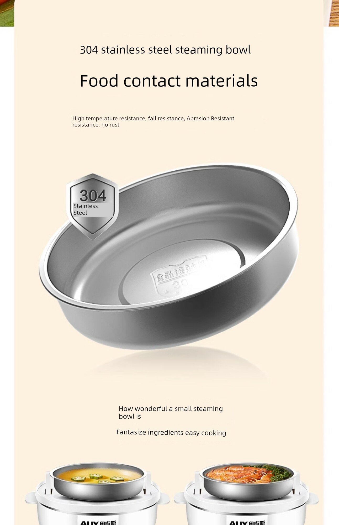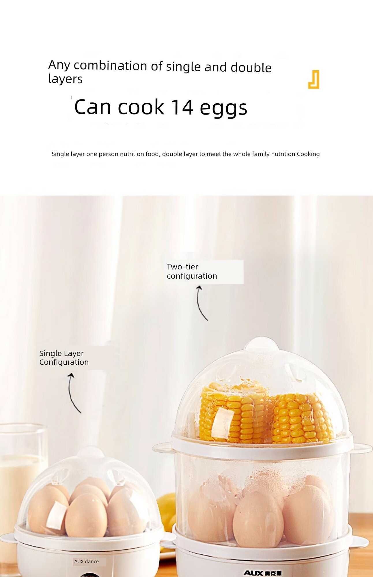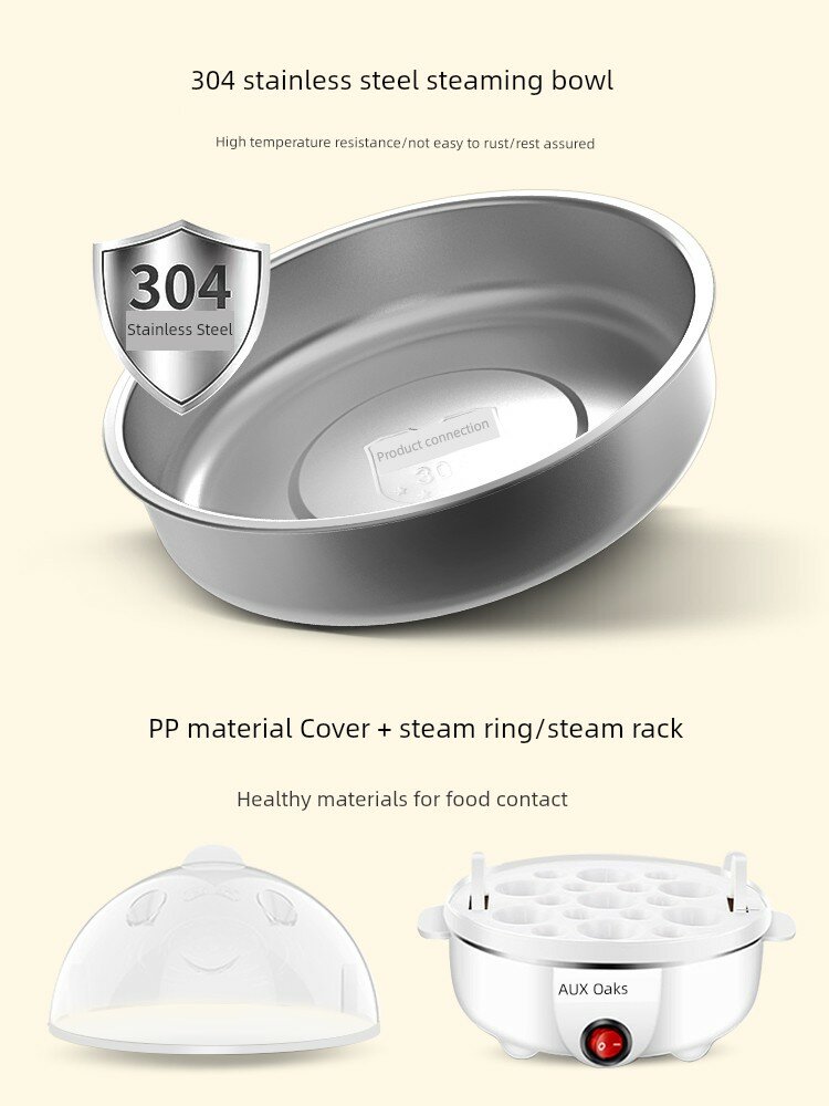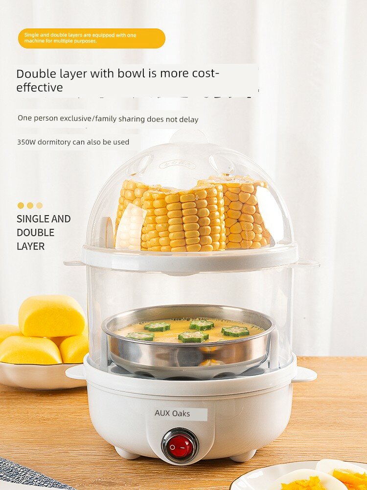 Мини-пароварка для яиц двухъярусная с миской из нержавеющей стали 304 - белая