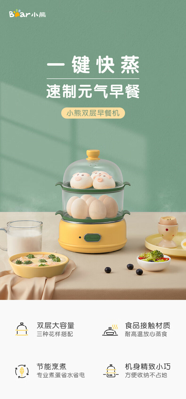 | Дополнительная информация | двухслойная большая вместимость, материал контактирующий с пищевыми продуктами, три вида соответствия, высокая термостойкость, энергосберегающее приготовление, компактный корпус, профессиональное приготовление яиц, компактное хранение, визуальная прозрачная крышка, автоматическая защита от отключения, ручка отпаривателя против ожогов |
