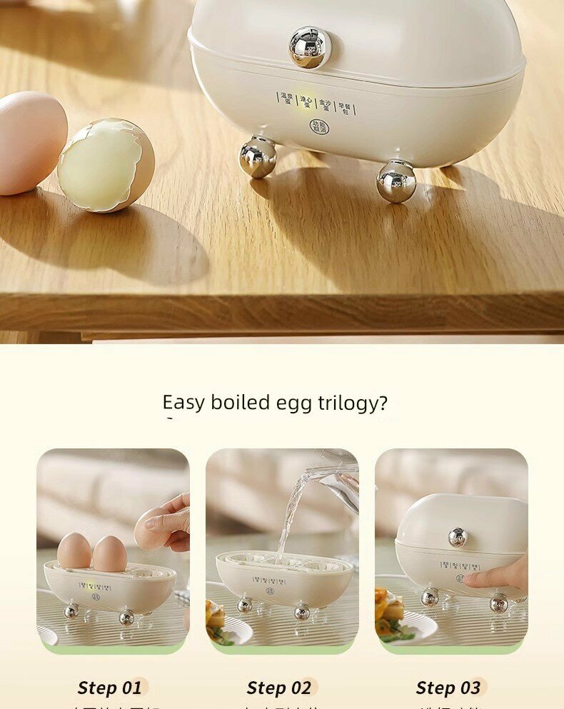 Автоматическая пароварка для яиц, кремово-белая, 3 яйца, с подставкой с подогревом