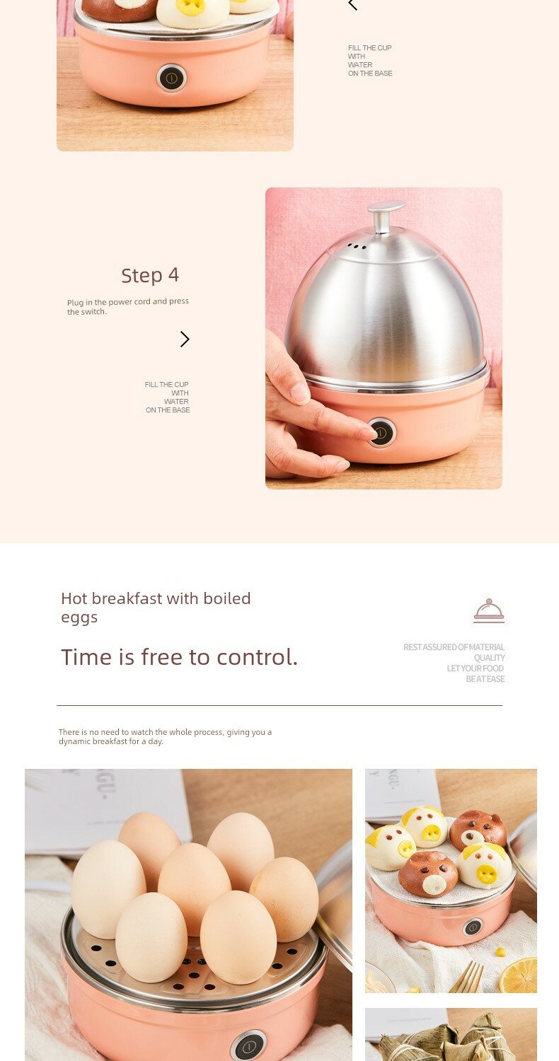 | Дополнительная информация | корпус из нержавеющей стали, крышка из нержавеющей стали, пароварка для яиц из нержавеющей стали, автоматический выключатель сброса питания, защита от сухого горения, нагревательная пластина из нержавеющей стали 304, многоцелевой, стерилизация бутылок, может приготовить 7 яиц за раз, 220В |