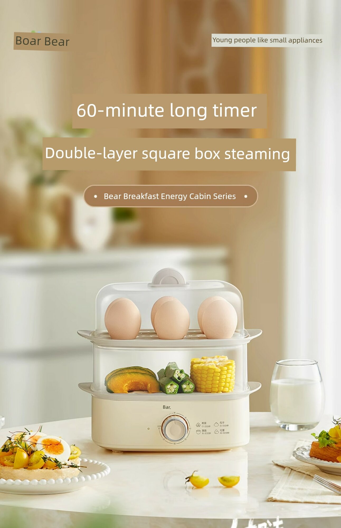 Двухъярусная пароварка для яиц с таймером, PP-пластиной и миской, бежевая