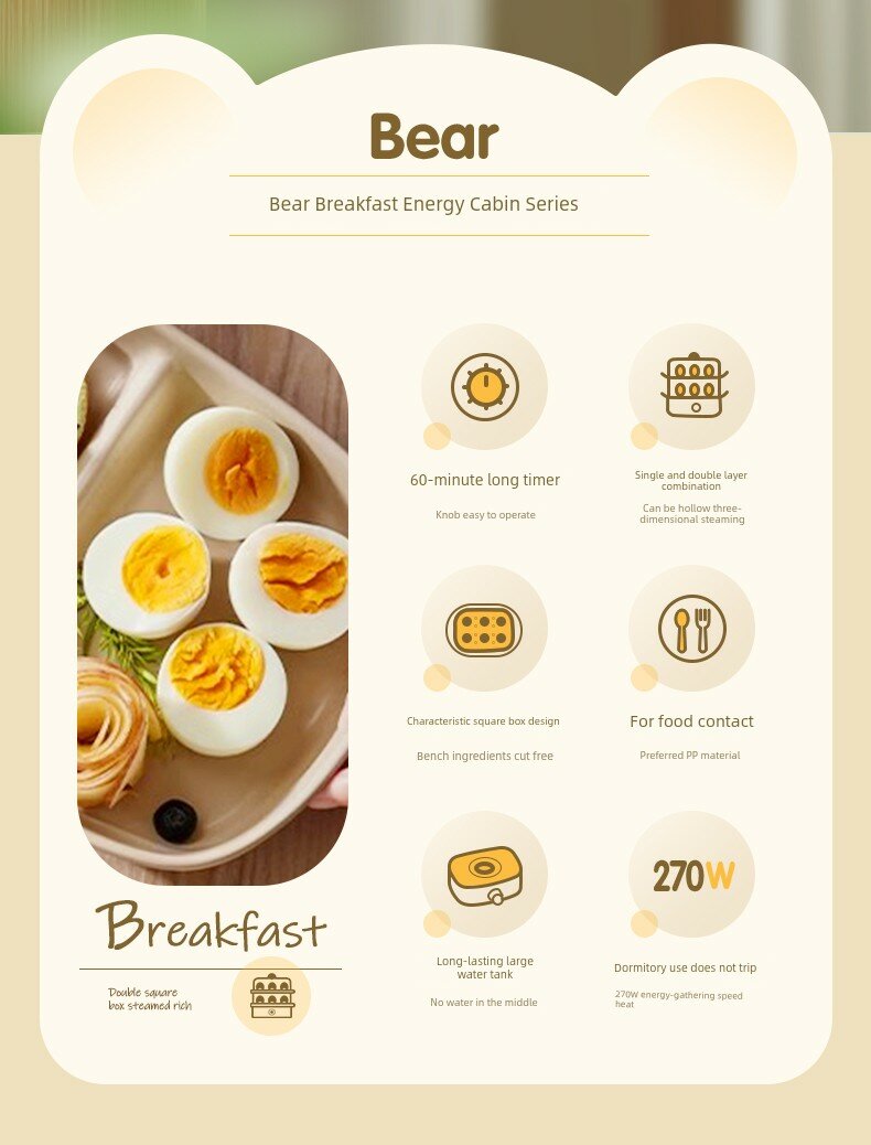 Двухъярусная пароварка для яиц с таймером и PP-подносом, бежевая интересное: