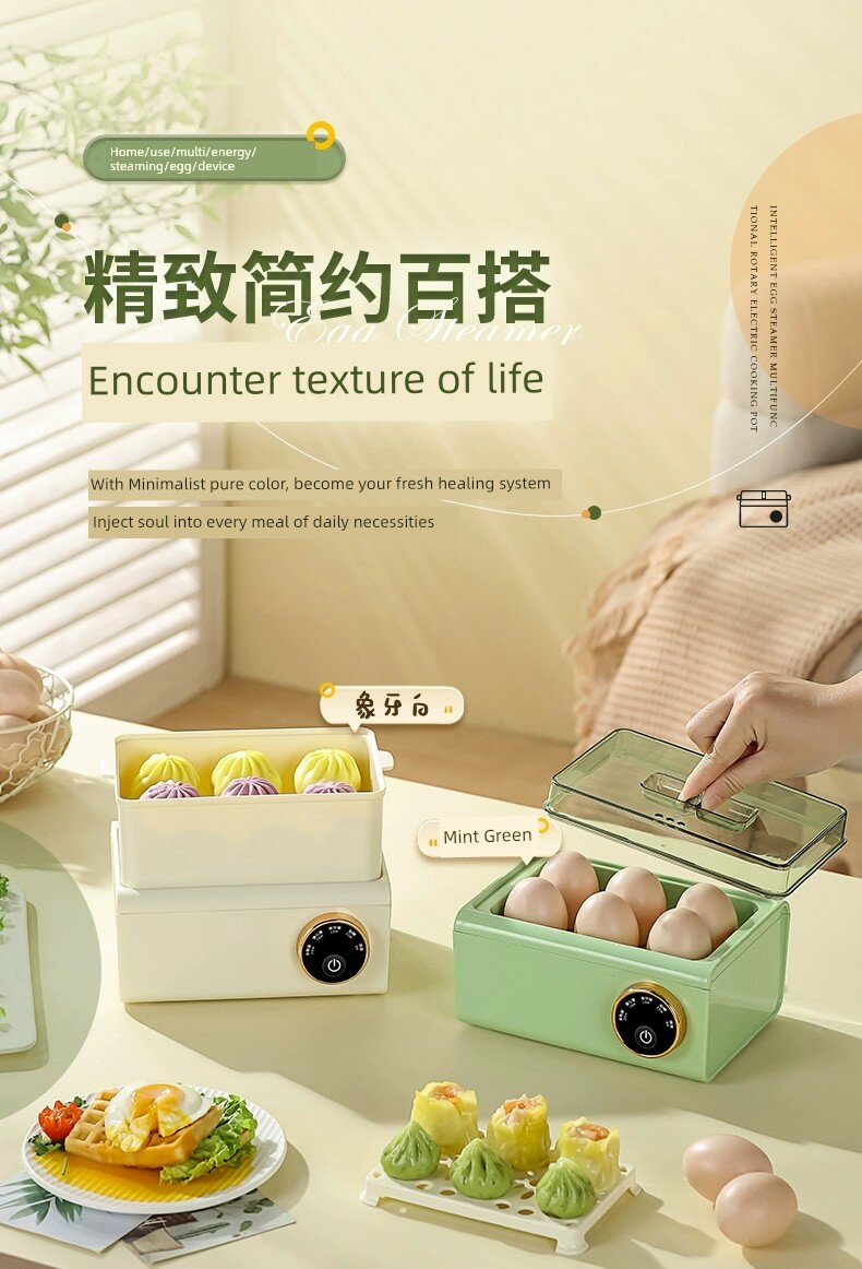 Мини-пароварка для яиц с таймером и чашей из нержавеющей стали 304, двухслойная, слоновая кость