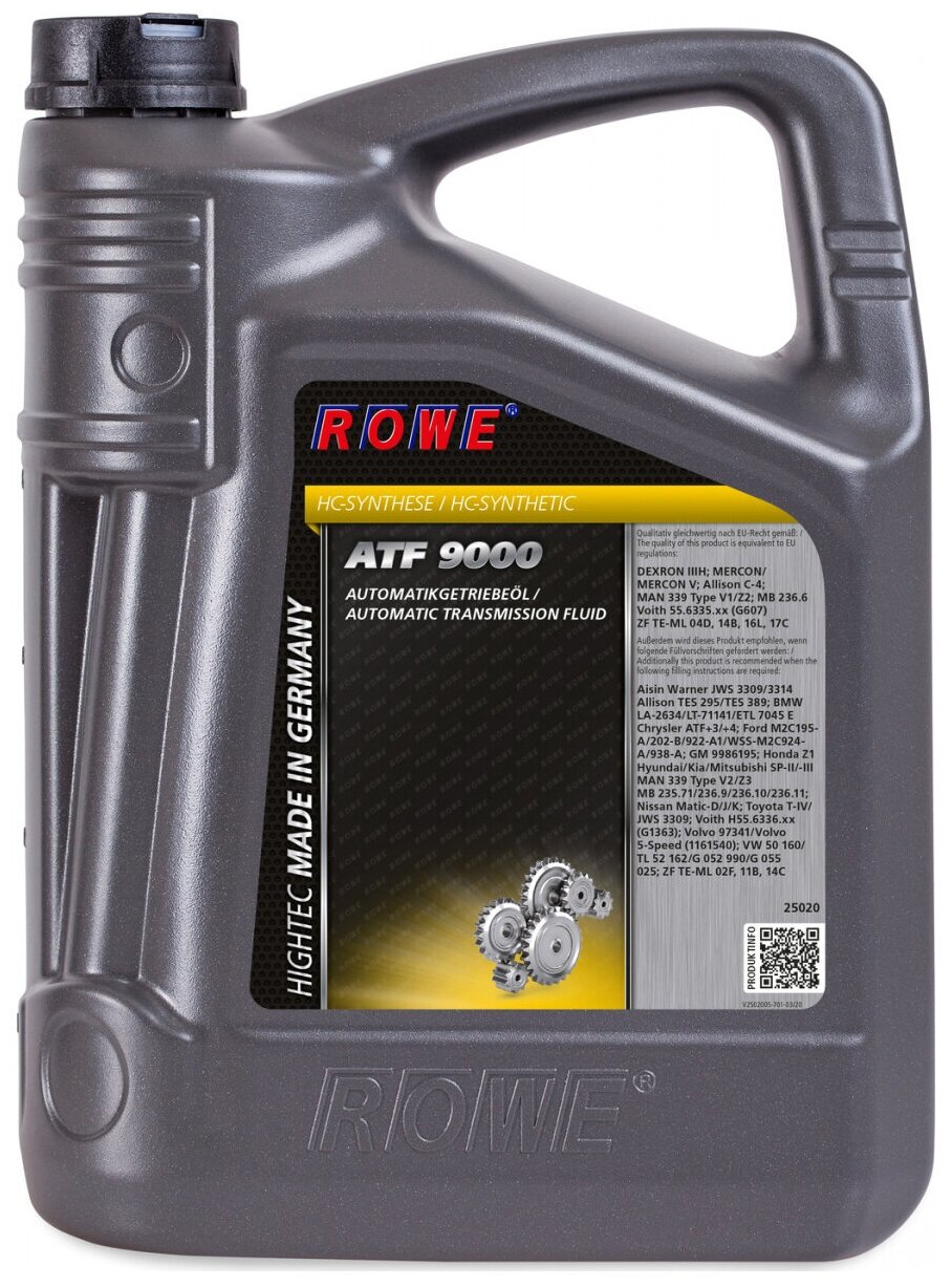 Масло трансмиссионное rowe 5л нс-синтетика hightec atf 9000 dexron iiih, rowe, 25020-0050-99