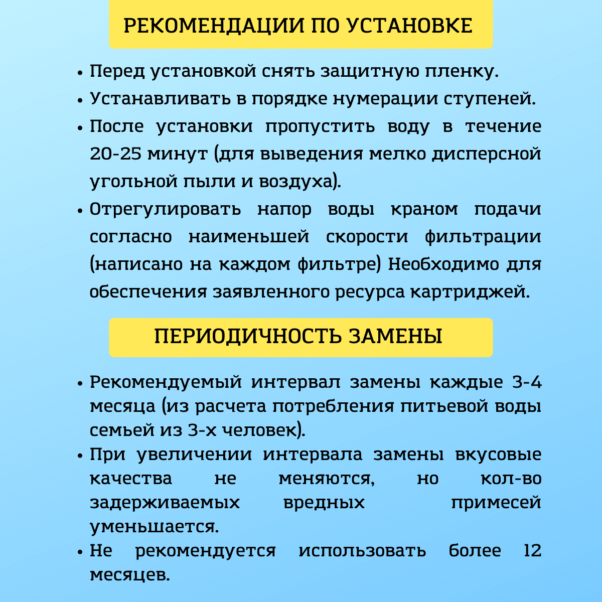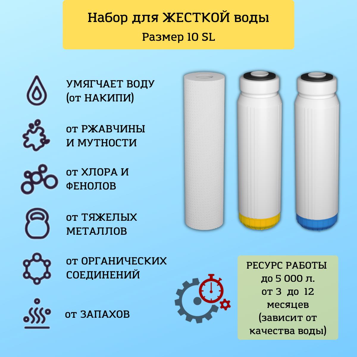 | Дополнительная информация | Только для водопроводной воды, ресурс зависит от степени загрязненности воды. |
